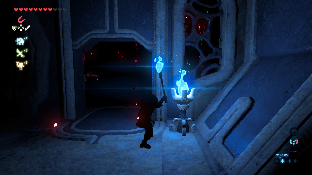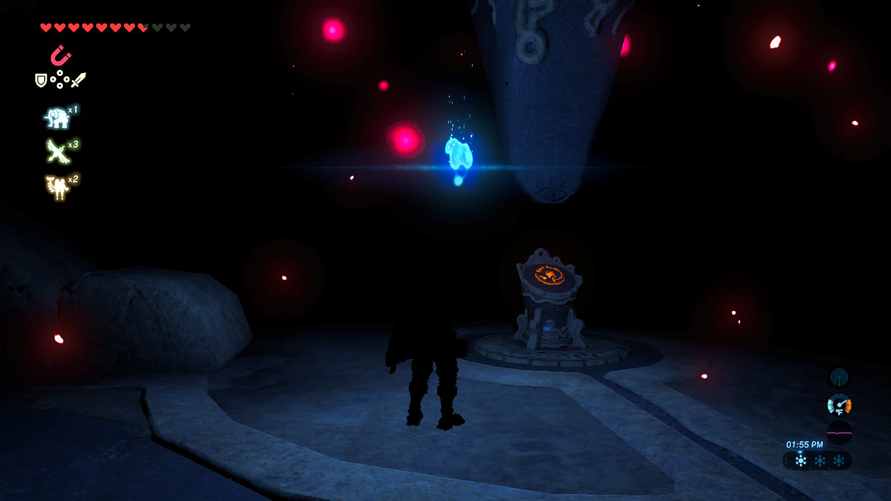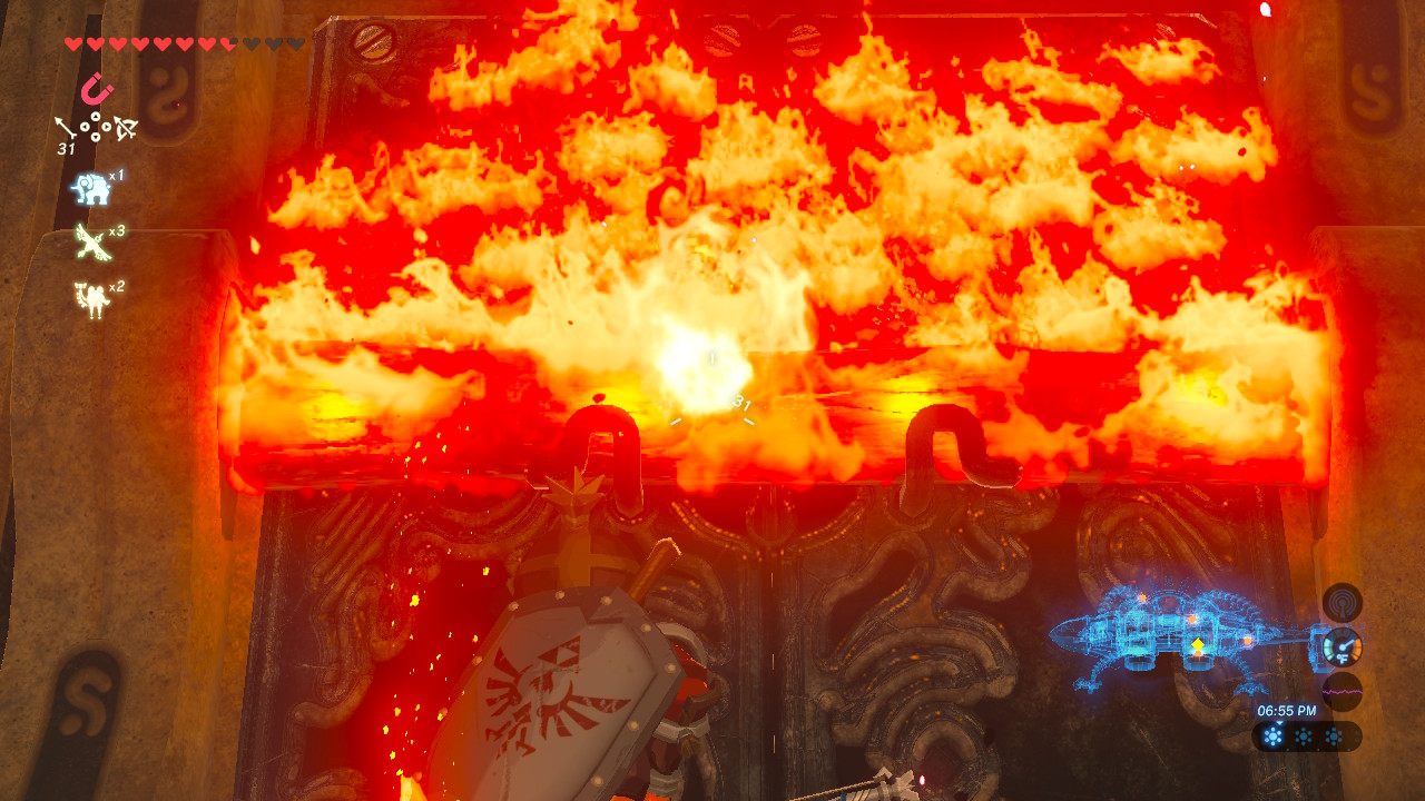- Optional Chest: In the second Sheikah terminal room, burn the moss to drop a chest from the ceiling.
