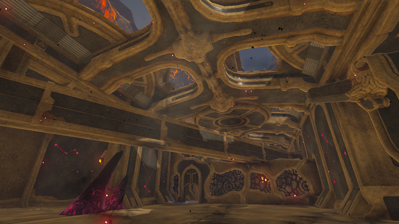 The Vah Rudania interior is pitch black. Take the ramp down, and all you’ll see is neon darkness. Shoot at all the visible corruption eye — three should be visible from the ramp — and collect all the treasure.
