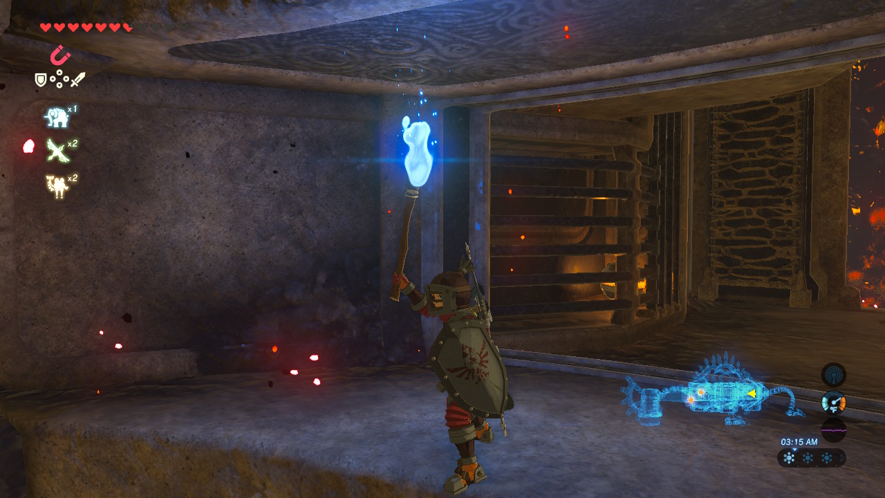 - Daruk’s Protection: When blocking, an impenetrable shield forms around Link.