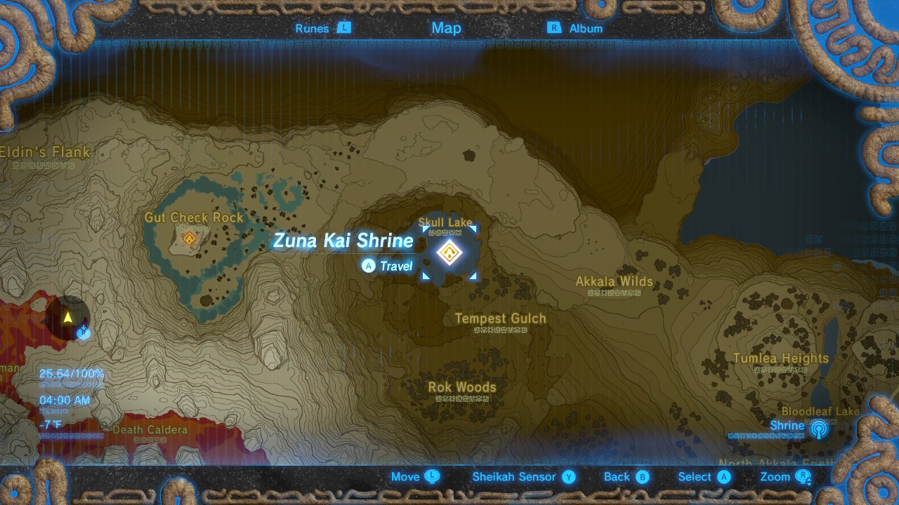 Located in the northern section of Akkala, the shrine is on the super-tall natural tower found in the “right eye” of Skull Lake.