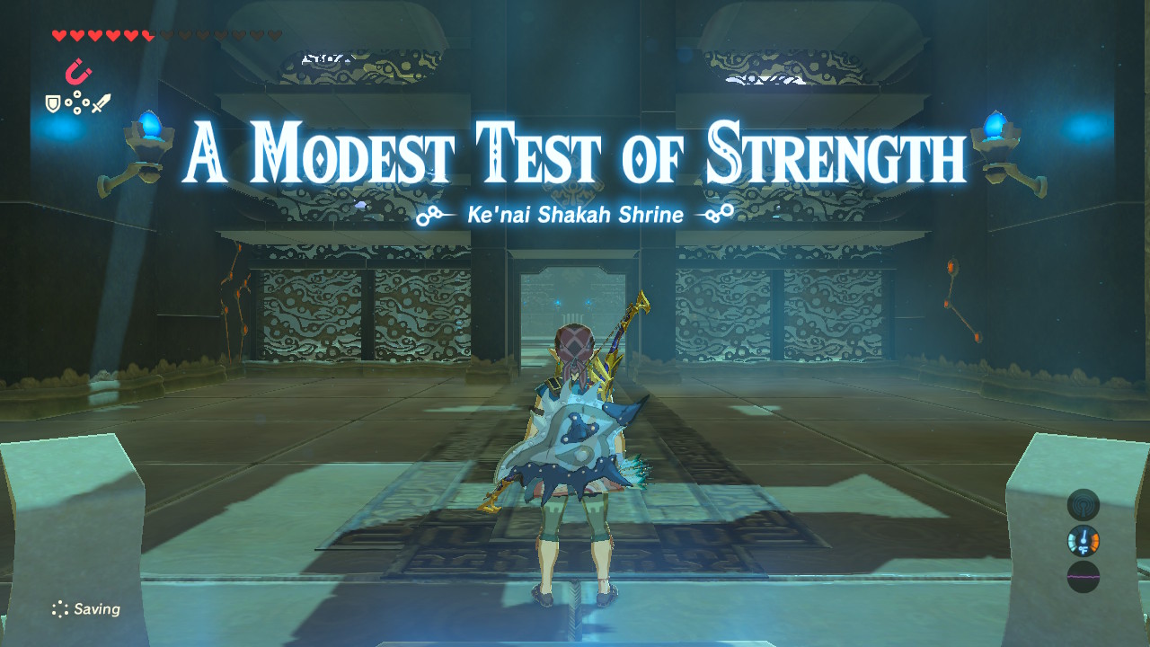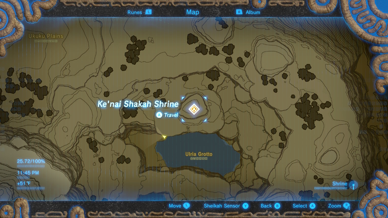 Find this hidden shrine in a cavern at Ulria Grotto. This prime mining spot features a hidden weak wall that, if properly bombed, reveals a tough-to-spot shrine. Link will need to purchase a bomb arrow or two to crack open this shrine.