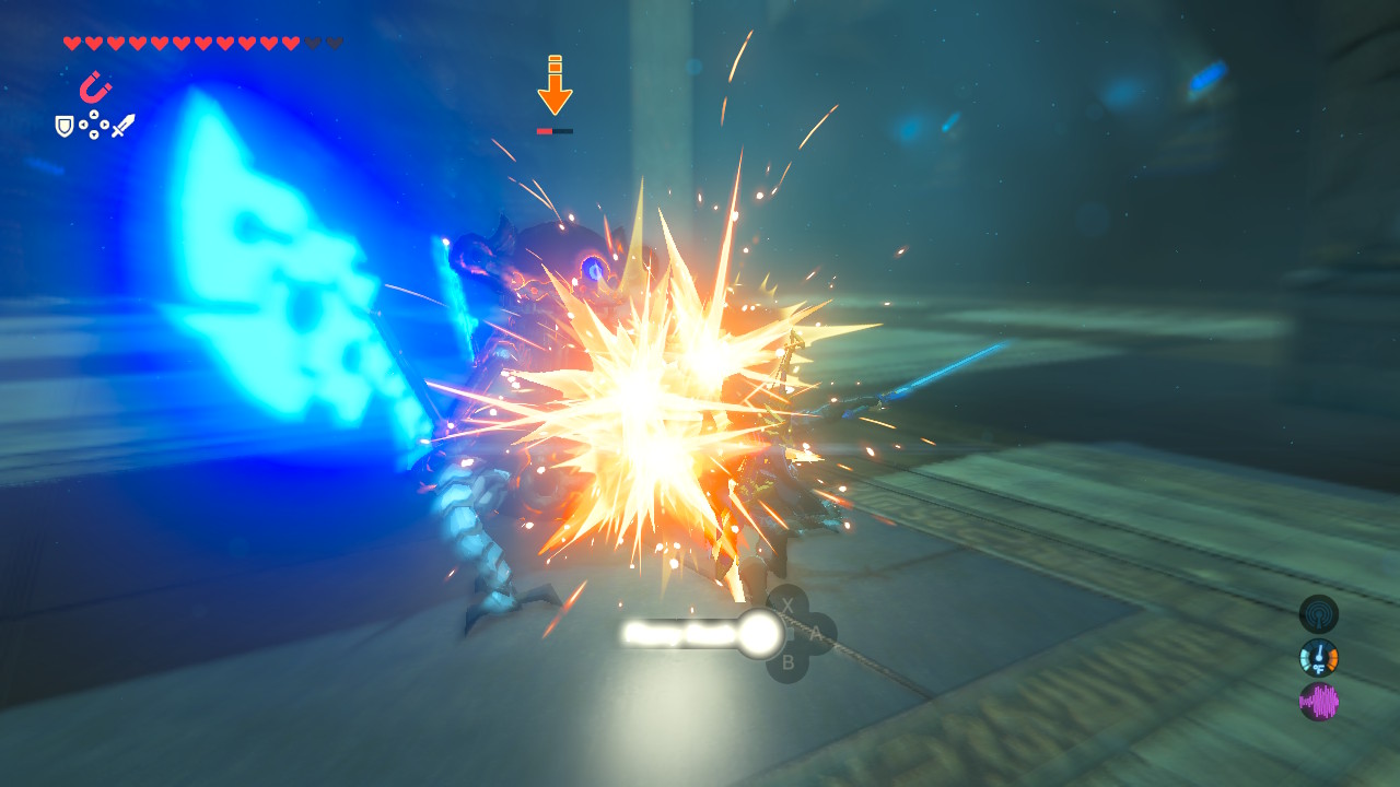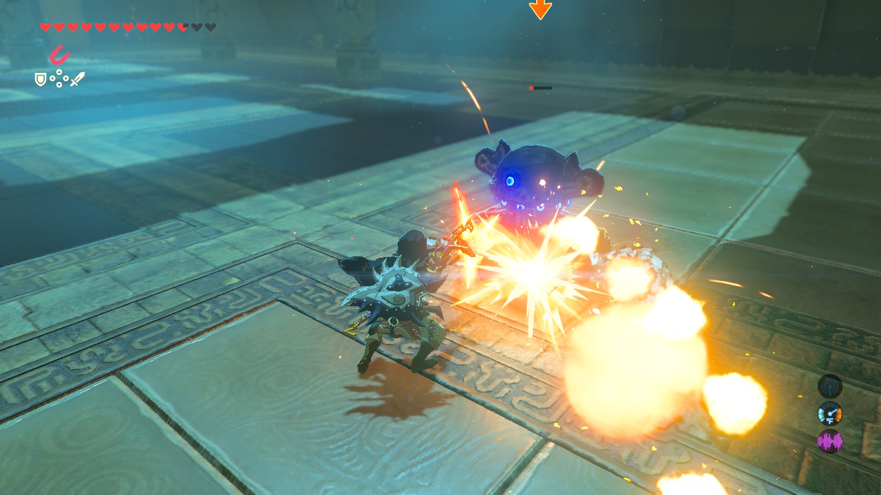 When the Scout Guardian switches to the giant axe, it’s time to avoid attacks. The light sword isn’t too powerful, but the axe can kill a weak Link in one attack.