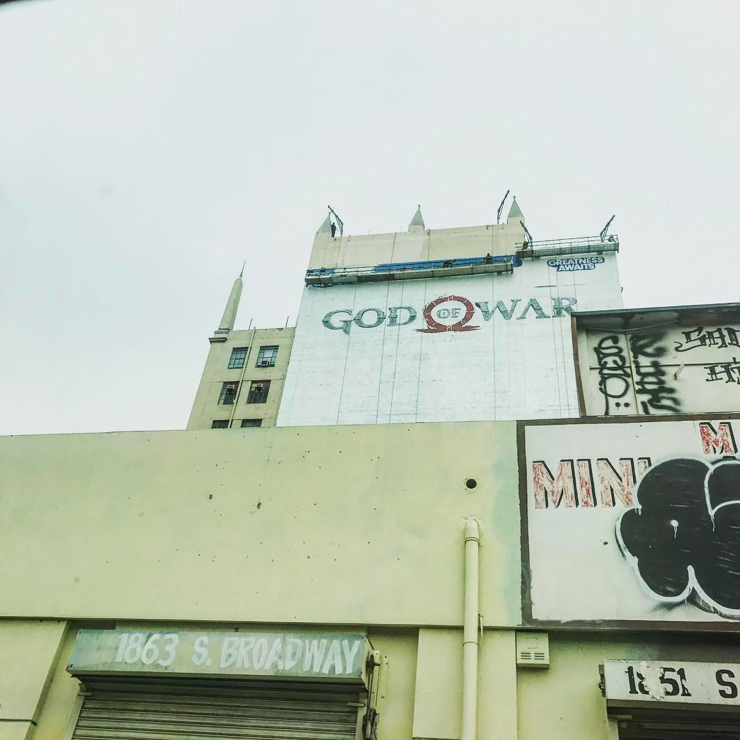 The latest ad to go up in LA is this giant God of War poster. It seems that PlaySation has got something God of War related lined up for their E3 press conference, judging from the massive poster.