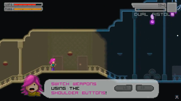 Bleed comes with a unique control scheme that’s tailored to the frenzied style of gameplay, and four different difficulty levels which switch up both boss patterns and enemy locations. If you beat the game as Wryn, there are three more characters to unlock, each with their own unique characteristics. A two player local co-op mode doubles the fun, and for the completionists out there, trophies and achievements have been added to celebrate the initiation to current gen gaming.