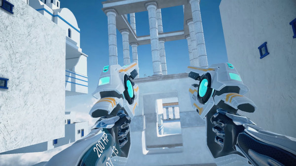 It’s set in a thriving, idyllic future 700 years from now, where a unique competition called Skyfront Tournament exists. In it, participants coast around an ivory, omnidimensional archipelago (Greek islands, anyone?) with such complete freedom of movement it’s akin to flying; their objective is to exterminate opponents in multiplayer, team-based matches that resemble both Halo: Forge and sci-fi adventure film Ender’s Game. Players are free to take advantage of three different weapons, four special abilities for a strategic boost, and a mysterious game-changing locomotion device.