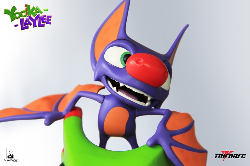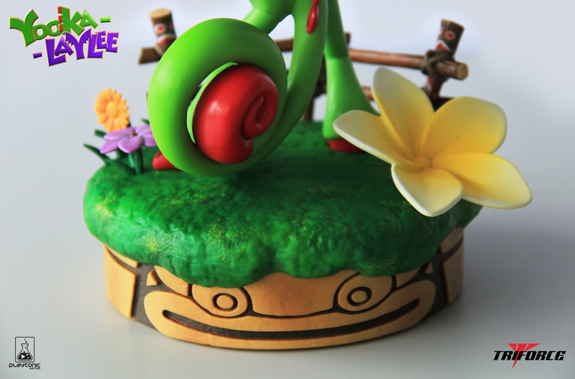 To tide fans over until Yooka-Laylee arrives on the hybrid console, Playtonic and TriForce have teamed up for the Yooka-Laylee Collector-Boxie, a beautifully realised 10-inch statue tribute to the green and purple duo. The precision paint job faithfully represents the original character models, and captures the granular, luscious texture of Tribalstack Tropics’ jungle grassland, which is further embellished with flowers and propped up by the iconic Aztec-style platform beneath.