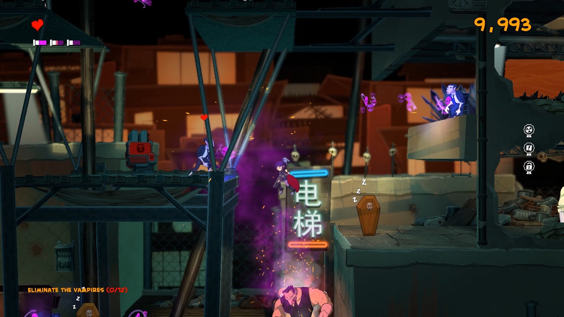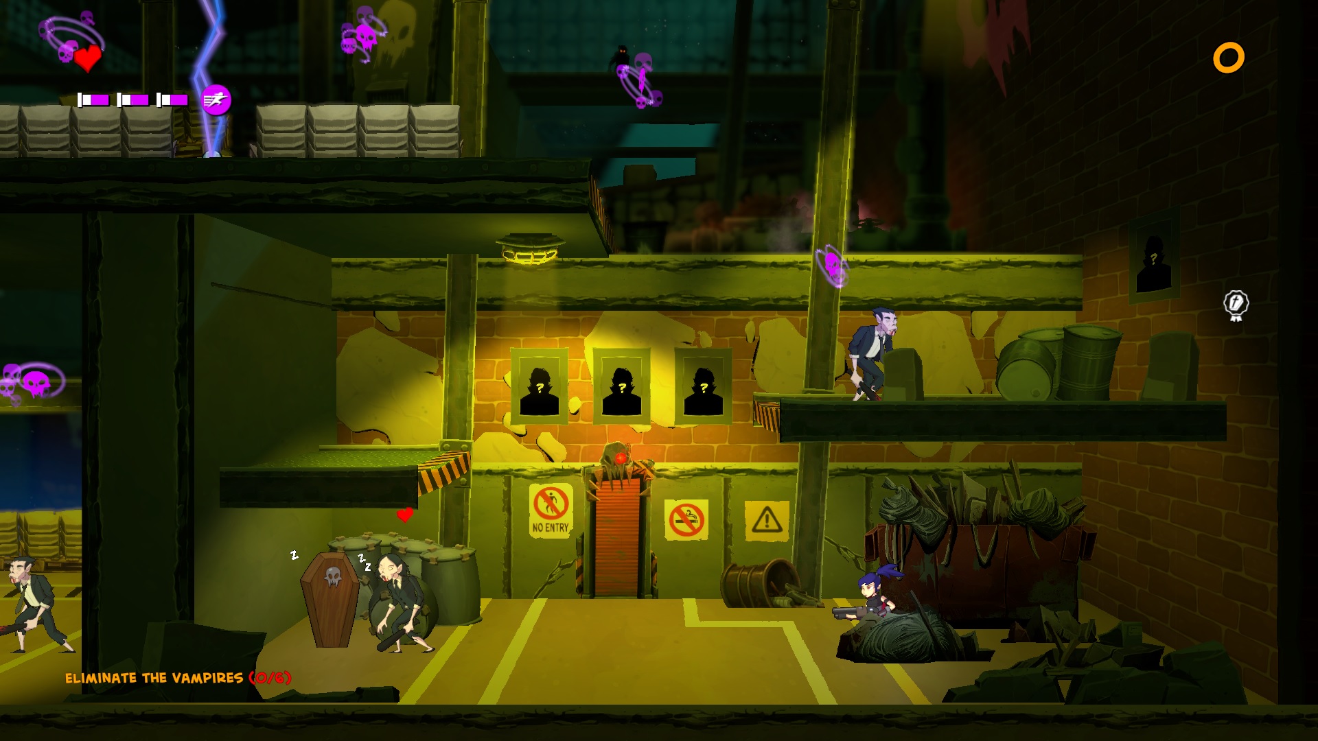 Damsel takes place in a dreary cartoon universe where vampires are settling for Red Mist, a vampire drink (aka human blood analogue) that quenches their insatiable thirst. But there’s tension behind the scenes; Red Mist makers are allegedly preparing a secret menu with genuine human blood, and that’s where Damsel, an agent for the DSA (Department of Sanguinarian Affairs) needs to step in and stop the vampire elite in their tracks.