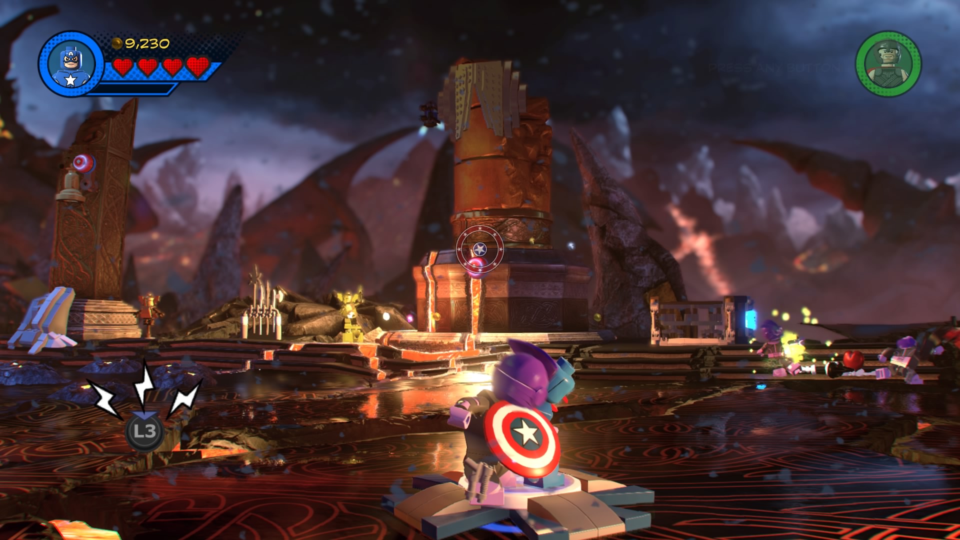 That’s when he’ll attack in tiny, minifig-form – keep pummeling! When he gets big again, use the Cap Shield Pad to bounce Captain America’s shield off the bumper to the right. Keep smashing when he’s tiny, and you’ll complete this quick level.