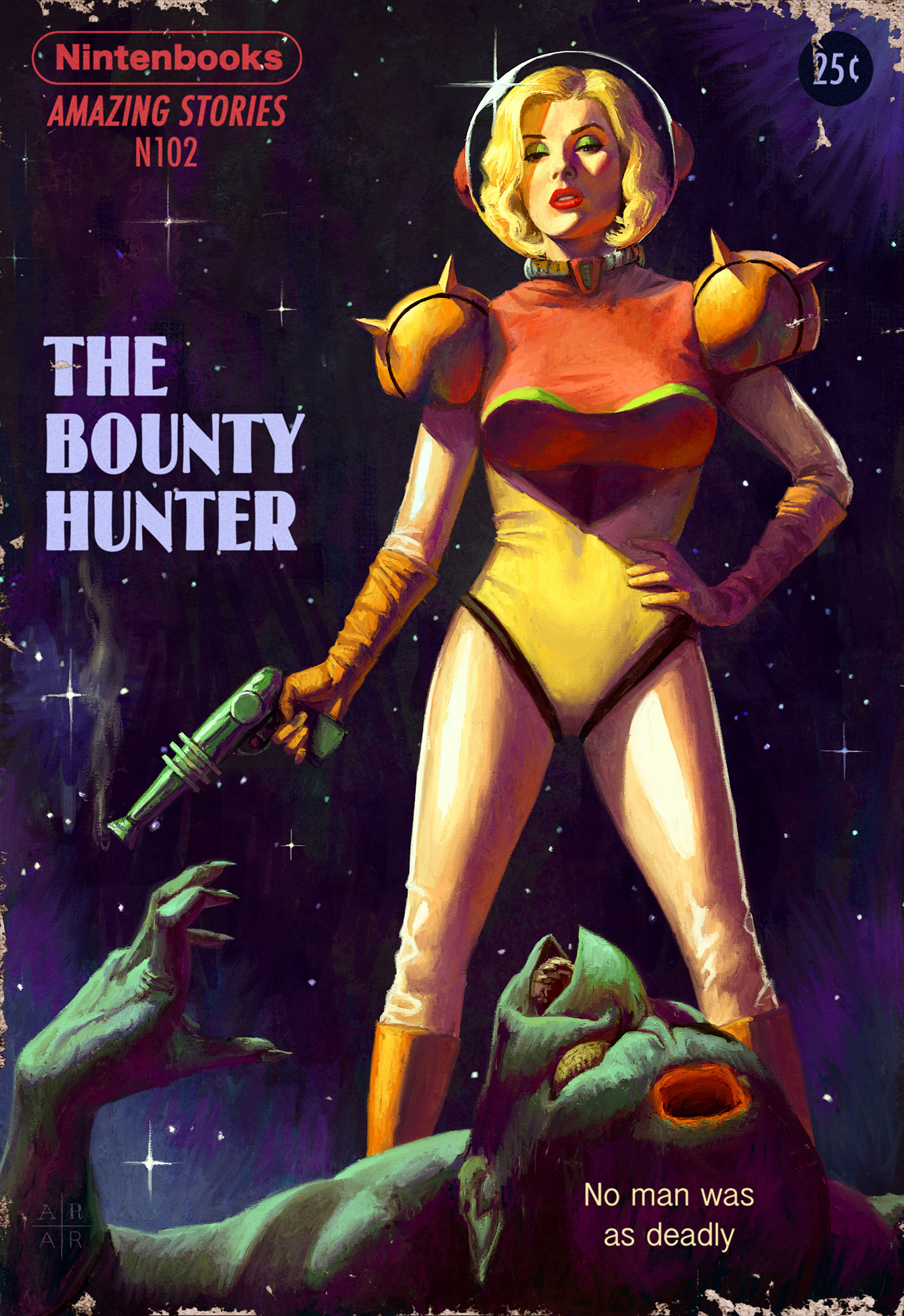 There are other fantastic scenes depicted in the pulp cover style that you can check out in the artist’s portfolio, including a serial featuring Dr. Gero, Cell, Trunks, Android 17 and Android 18 from TV and manga series Dragonball Z. You can check that out at his ArtStation page here. His (occasionally NSFW) art also dabbles in other works like the Batman series and celebrity portraiture. Be sure to give it a look in addition to the gallery of video game themed photos below.