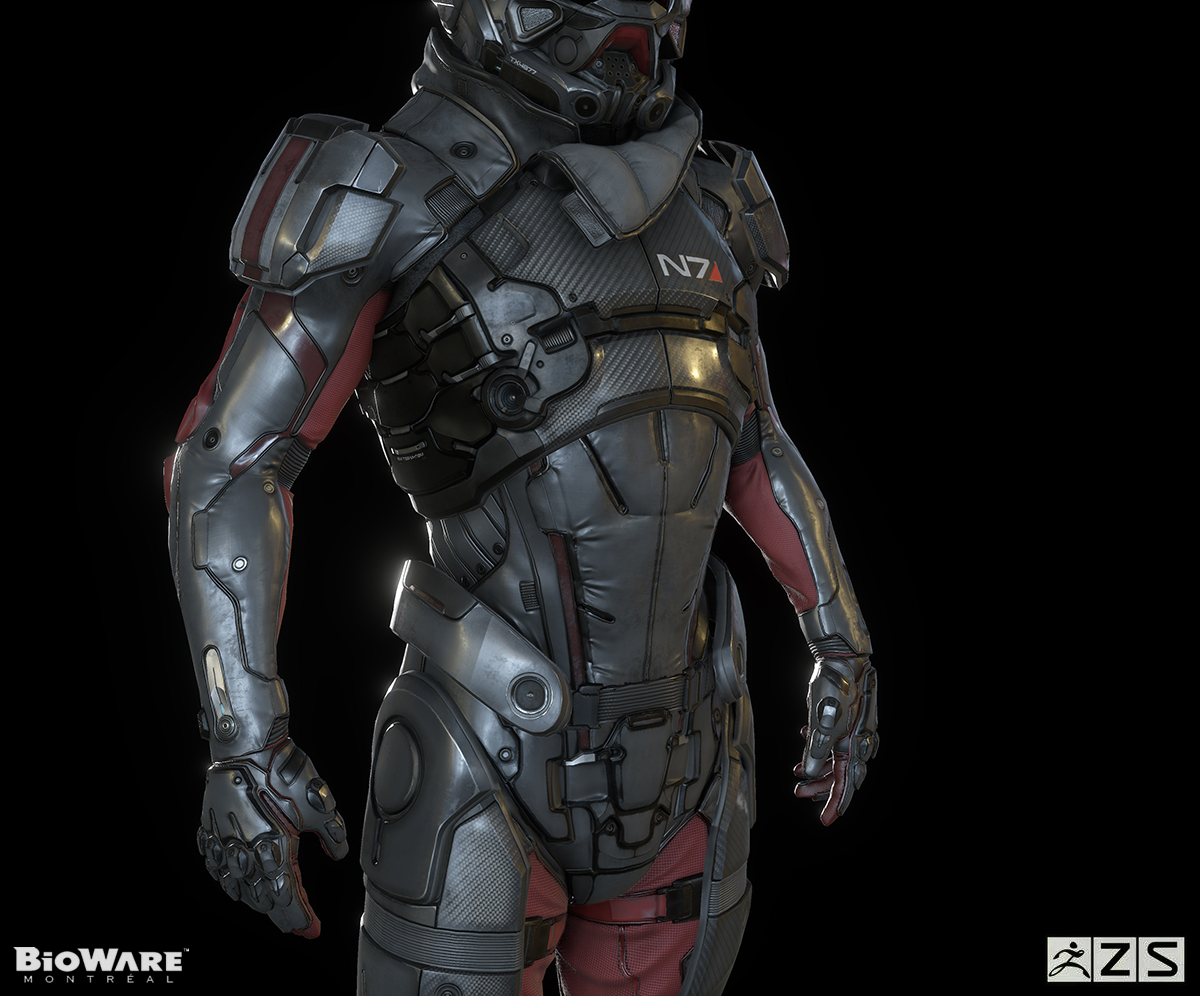 “Our Pathfinder character model at BioWare Montreal… for Mass Effect Andromeda,” Tedeschi wrote. The actual work on the model comes from Herbert Lowis, another artist.