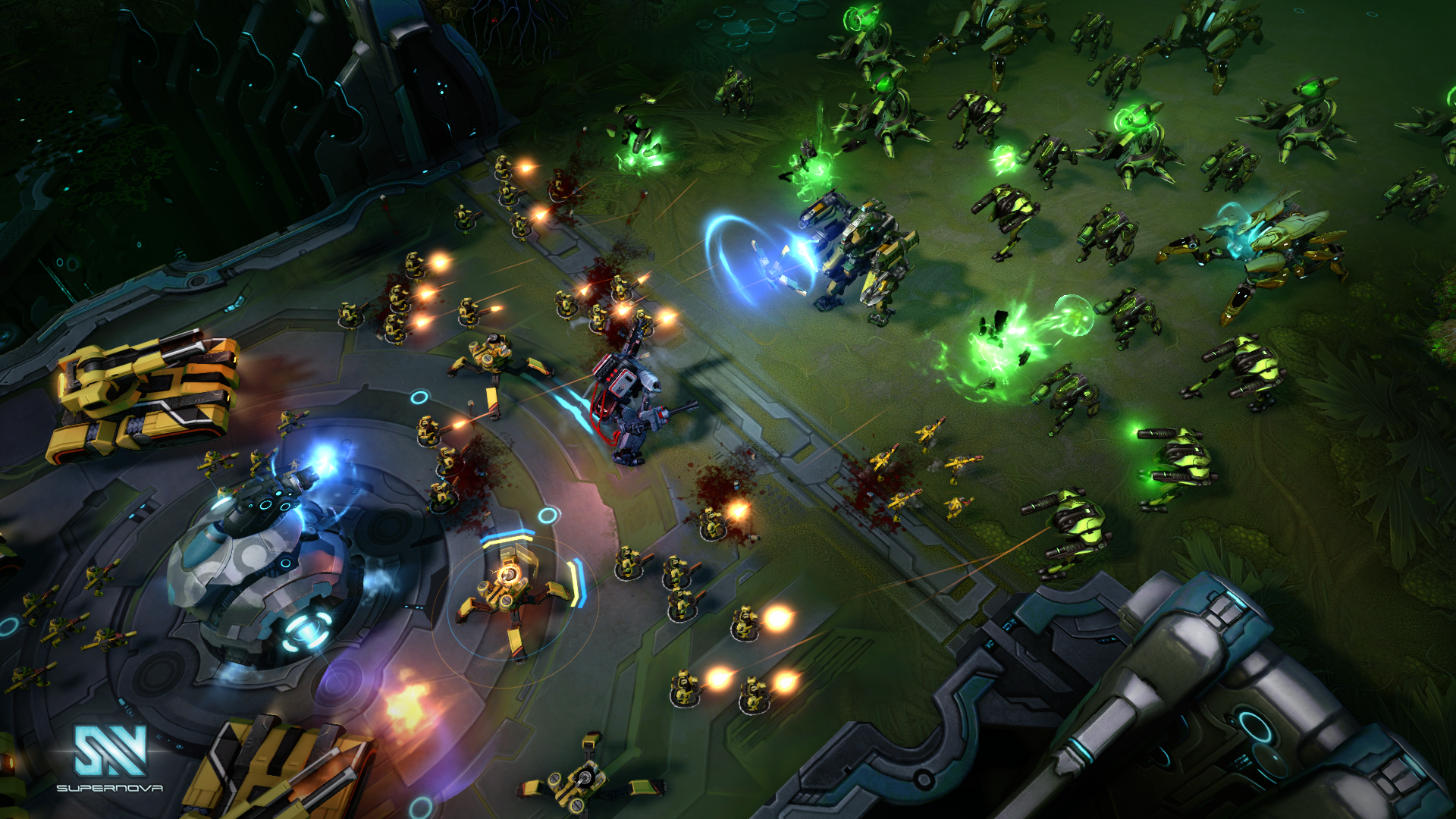 Supernova invites players to fight as mechanized commanders or aliens to save their species from extinction. In addition to playing like a regular MOBA, players can also control minions, known as forces, to push down the lane towards the enemy base.