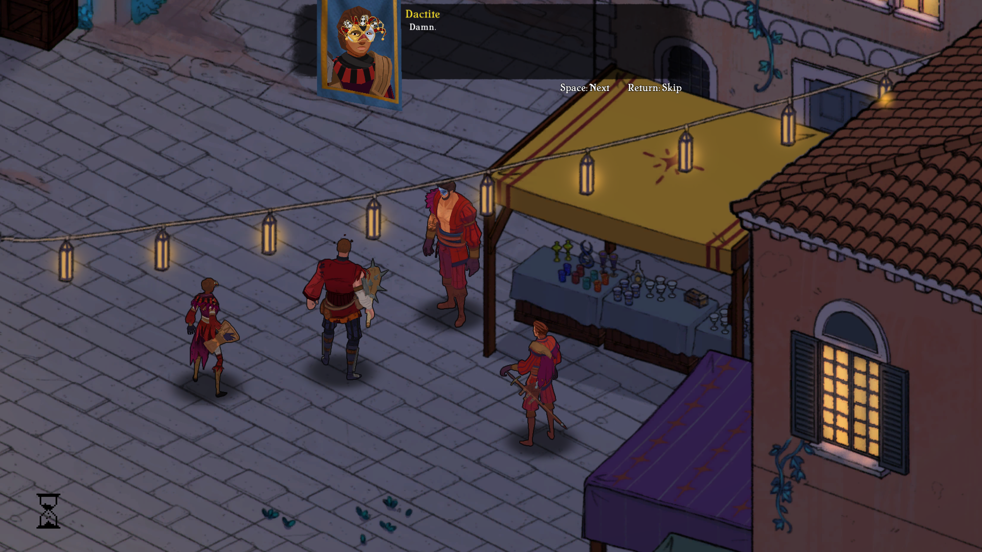 The gameplay of Masquerada: Songs and Shadows centers on a”Pause for Tactics” style of combat. You can pause the game and make calculated decisions about how Cicero and his party members fight battles. Alternatively, you can just rush in and brute force instead. Masquerada: Songs and Shadows doesn’t have a standard type of loot system, but instead Cicero and every character carry signature weapons that can be upgraded by sigil engravings and ink patterns.