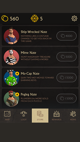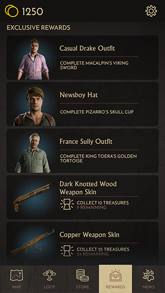 Fortune Hunter comes with 6 adventures and 200 different puzzle chambers total. You and Sully team up to collect over 50 treasures hidden across the game’s four worlds. You unlock in-game rewards (costumes), as well.