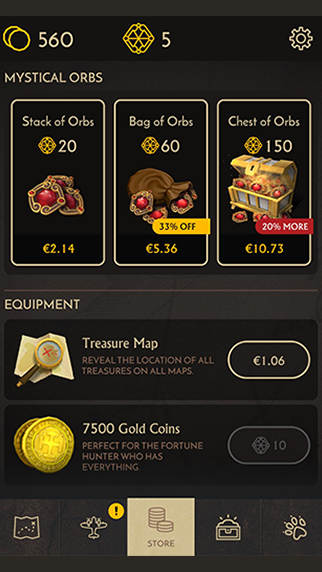 While the game itself is free, there are microtransactions. You can buy mystical orbs by the stack, bag, or chest. If you want to reveal the locations of all the treasures, you can throw money towards that too.