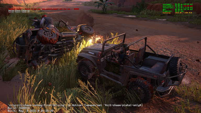 Driveable vehicles were also first introduced to Uncharted 4: A Thief’s End. Previously, the vehicles were only operated by AI and they all were constrained to a spline rail, meaning that there were no variables needed to be placed on the vehicle itself.
