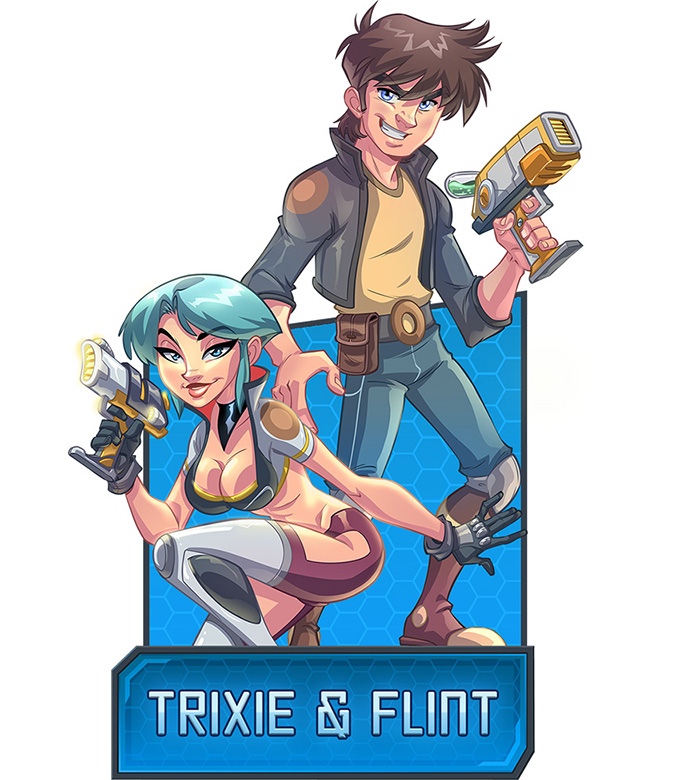 From what we know so far about the story, Flint was an ordinary man until he was hit by a strange blackhole. After entering the blackhole, Flint was able to save a deadly space pirate named Trixie and her makeshift crew. Now with the duo paired together and the police force on their trail, they begin their epic journey of escape while meeting up with new aliens, strange mysteries, along with unfolding a conspiracy.