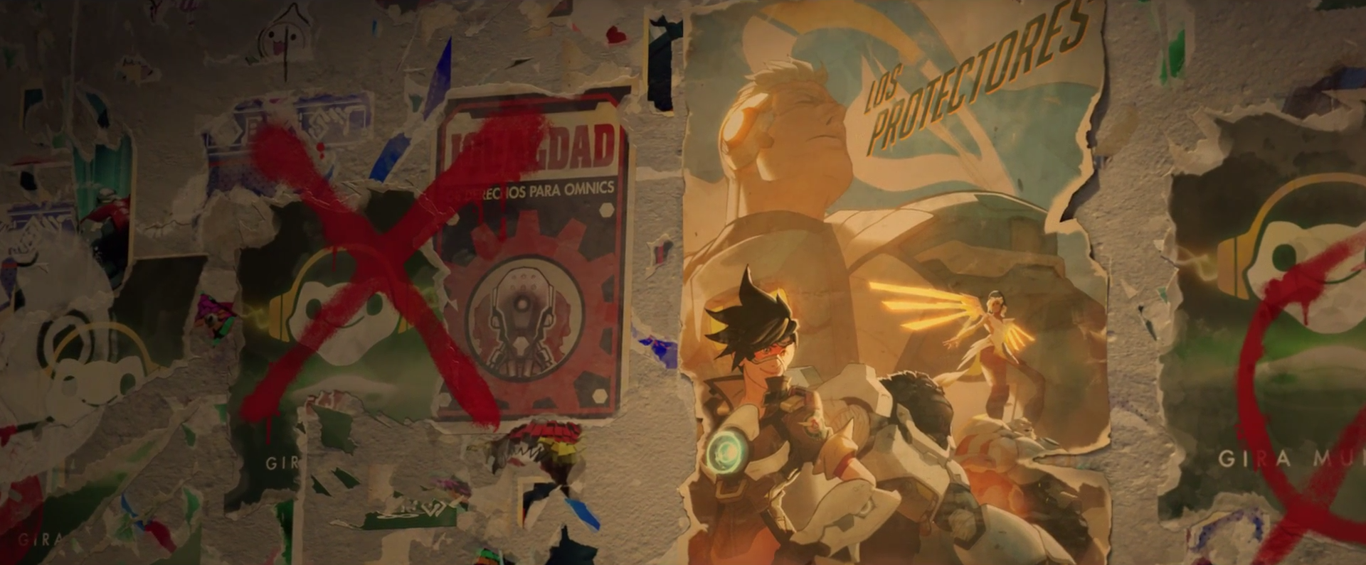 A teenage girl is tasked by her mother to go out and get some flour. But the two seem to get in many arguments, as the girl is shouting at her mother as she leaves. The Mother says that she raised the girl on the tales of the Overwatch heroes, to give her hope. The girl crosses paths with three thugs, that are beating up on a robot. She tries to walk by them unnoticed, but the thugs see her and (forcibly) offer her the chance to smash the robot herself. She’s reluctant, and the thugs then take her money and flee the area. The girl rushes to follow them, and she ends up in the middle of one of their hideouts.