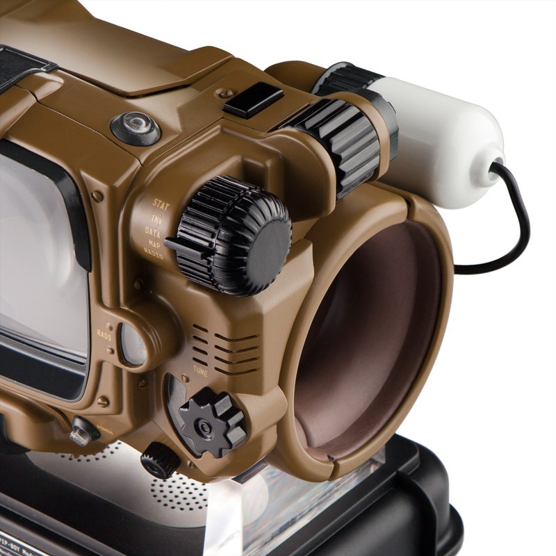 The Pip-Boy: Deluxe Bluetooth Edition is powered by its own rechargeable lithium battery with the RobCo Industries stand acting as the charger. Oh, and did I mention that the holotape at the top compartment is actually a USB drive?