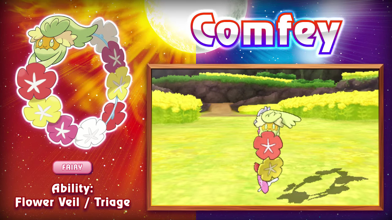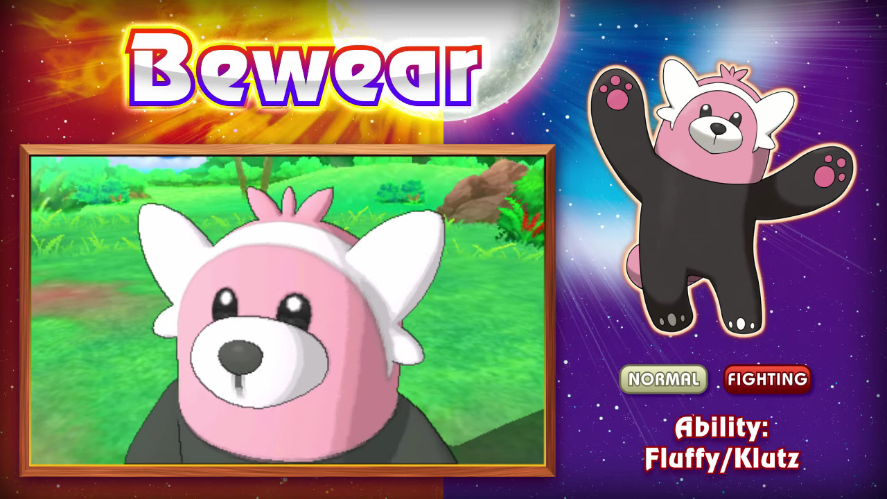 The six new Pokemon are Wimpod (Bug/Water), Bounsweet (Grass), Comfey (Fairy), Mudsdale (Ground), Bewear (Normal/Fighting), and Mimikyu (Ghost/Fairy). The last two of these were previously spotted in a CoroCoro leak a while ago.