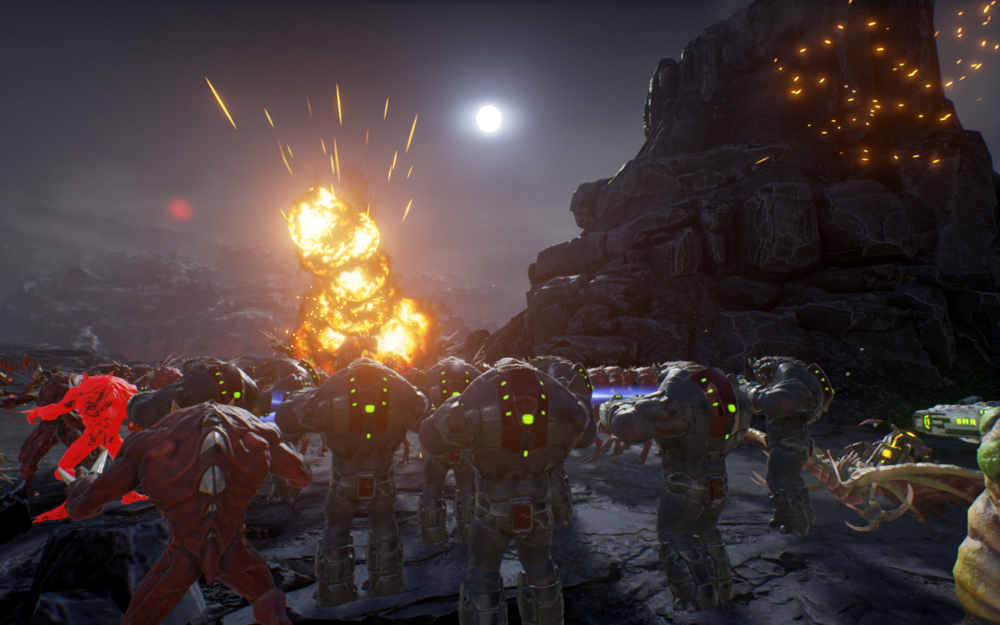 There’s many of the RTS genre gameplay mechanics at work here. You choose your own Galactic faction, and go to war with other alien civilizations. The key to dominating the battlefield is strategically placing your defenses where they’re the most effective, and working towards upgrading your buildings so they can make stronger units. The powerful army you create ushers forth destruction and slaughter on all who stand in your way. Multiplayer mode supports to 8 people, so you can have help test the alpha and have fun with your buddies both at the same time.