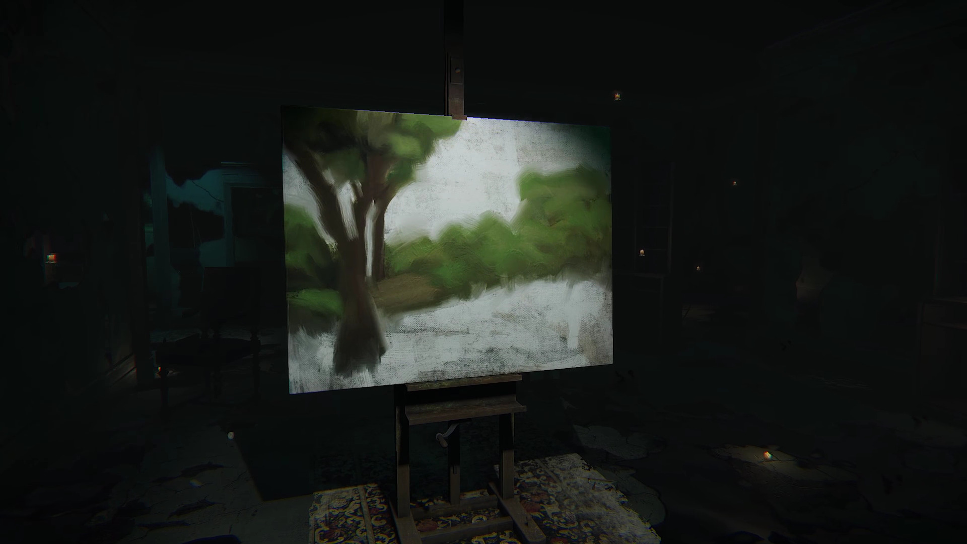 The mansion from the original Layers of Fear is nothing but ruins now. The artist was a bit of a crazy maniac, and he lost his sanity when he became obsessed with creating a masterpiece painting in order to avenge his own career. The artist had a family at some point during his career, and she’s the center of this new Inheritance DLC. She comes back to her childhood home here in order to come terms with the traumatizing experiences she faced growing up.