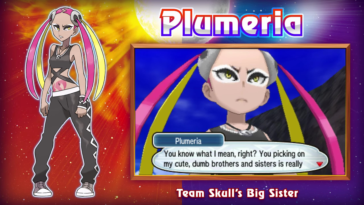 As hinted at previously, the bad guys for this game are Team Skull, and they’ll be causing a ruckus across the Alola islands. While we already got a look at the Grunts and one of the group’s key members, Plumeria, the video also gives us a look at the Big Boss of Team Skull – Guzma. As for Alola forms: Meowth, Raichu, and Marowak all have different looks in this game. Up to this point, it appears as if Generation I Pokemon are the only ones with Alola forms. Is this intentional? As for new Pokemon, we got to see Wishwashi and their school form, Pyukumuku, and Morelull for the first (official) time.