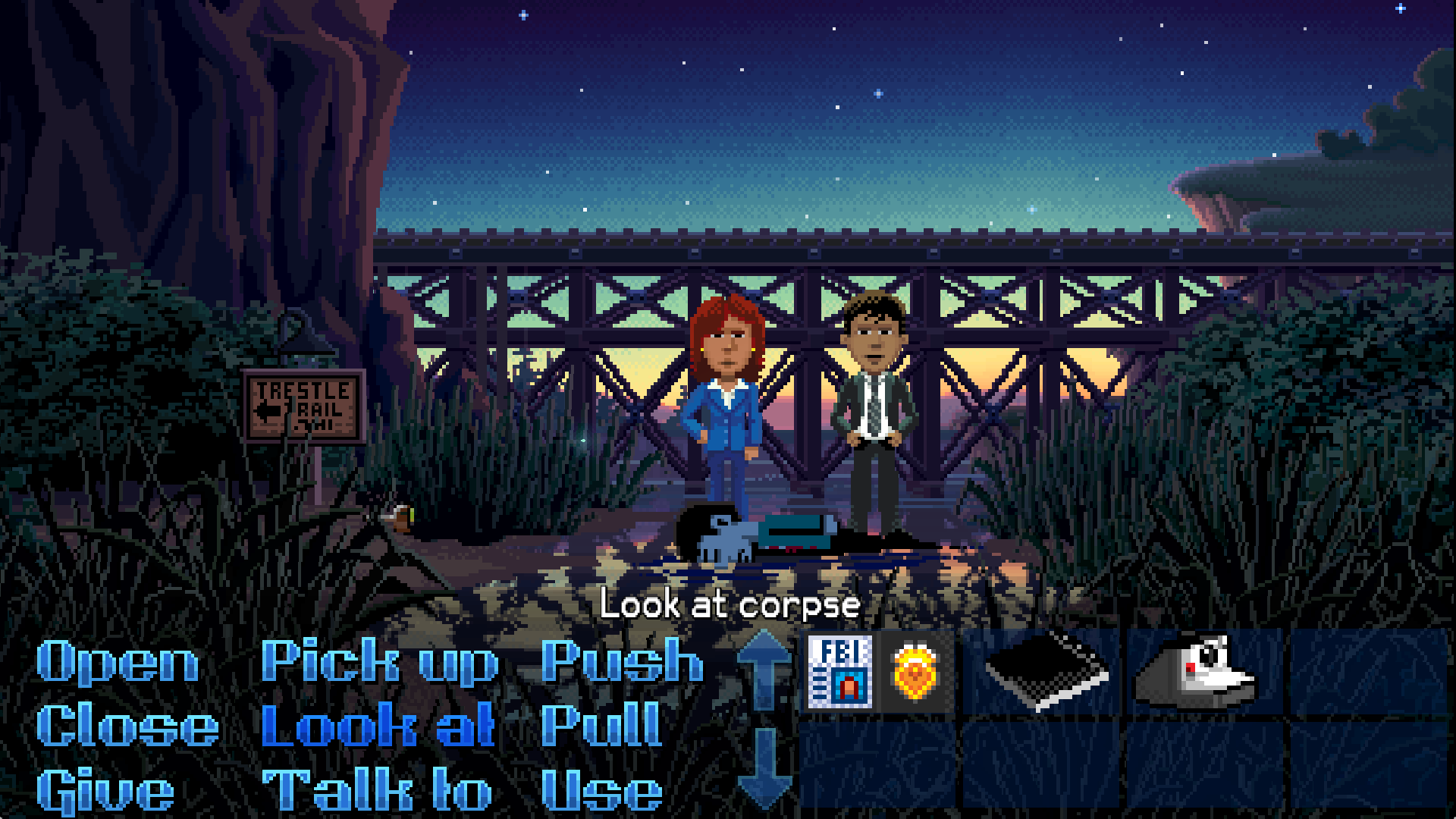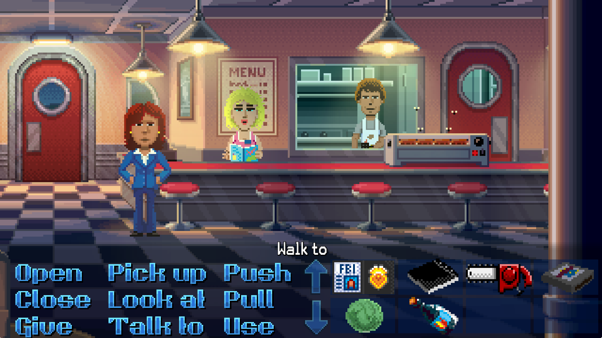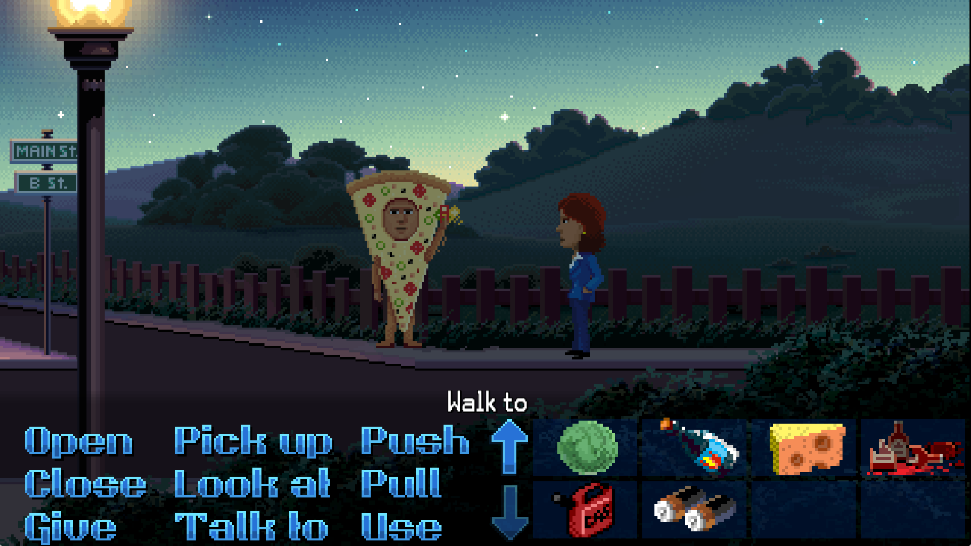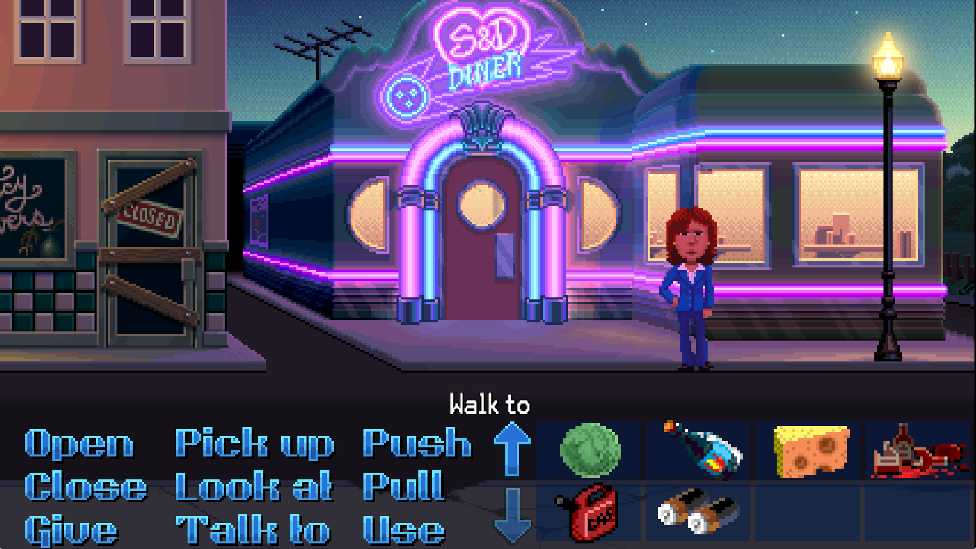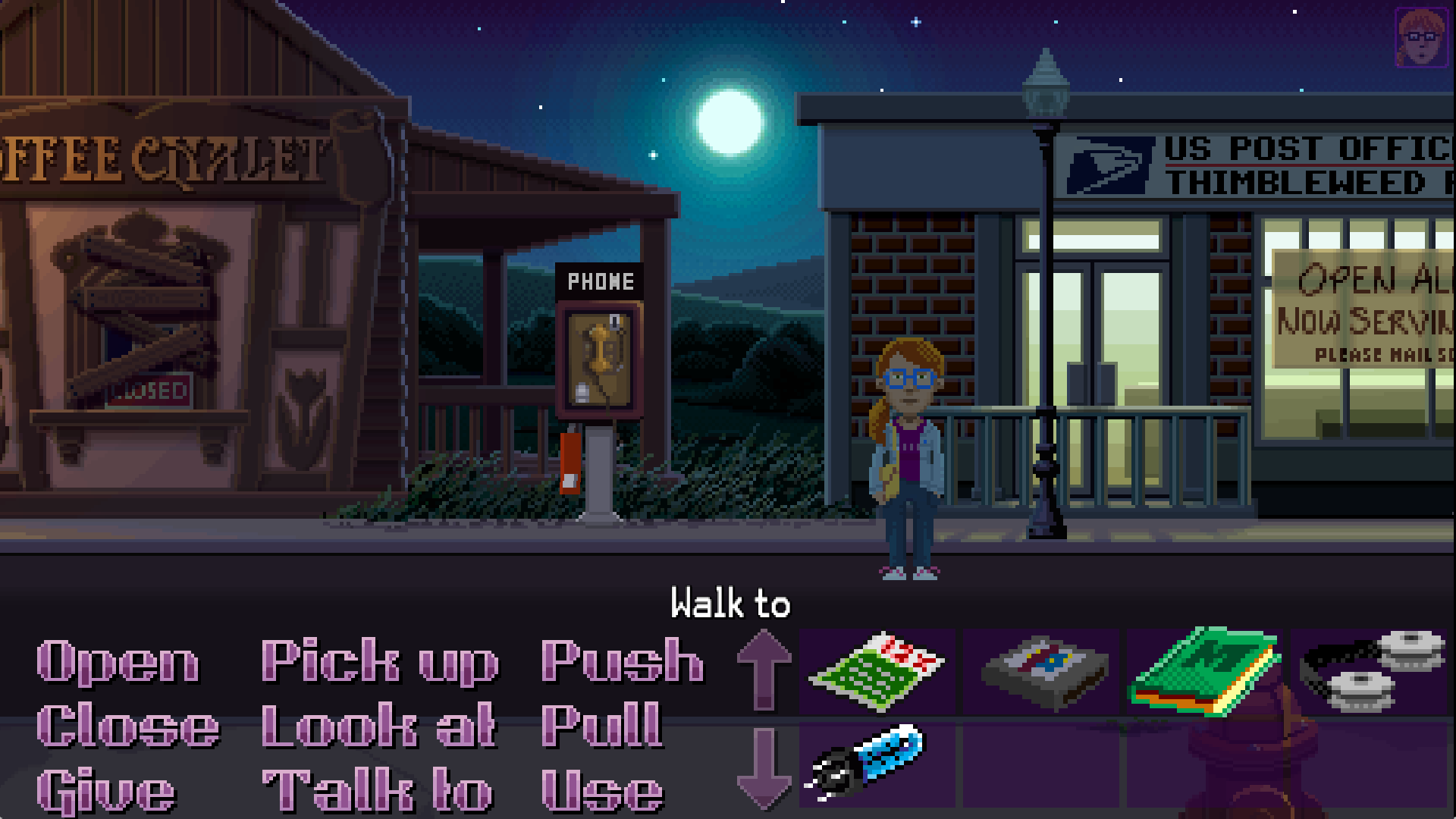 She gives us the backstory about how the town came to be in the first place. Her uncle was a pillow industry Titan and built a city around his famous factory. Thimbleweed Park became a bustling social hub that drew successful and wealthy people in, out of sheer curiosity and interest. But when the factory had to close down their business, the splendor of the surrounding town went away with it. In the husk and ruins of this land, Delores is the heir to her uncle’s empire. Although his vision was to have his niece restore it to it’s old glory, Delores sees the corruption and darkness lurking in the shadows. Something evil was born in the old days of Thimbleweed Park, and someone needs to stop it.