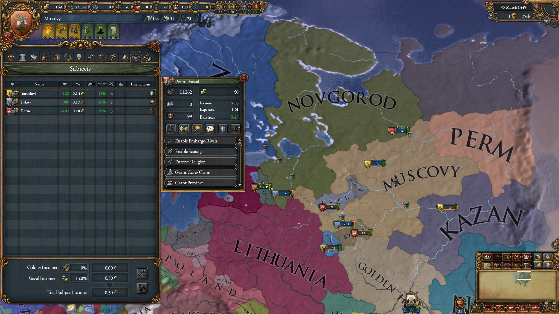 What the Rights of Man expansion boils down to is adding a layer of complexity to the diplomacy gameplay mechanics of the game. The most noteworthy of these features is the Great Power mechanic, that allows more advanced nations to intimidate weaker ones into doing their bidding. Along with that, the monarchs of your nation get character traits. These result in overall bonuses or penalties, and has an effect on how other countries see you. There’s an array of smaller tweaks being thrown in with this expansion, such as: the Ottomans get new Harem Politics events and options, greater control over cultural adoption, and more detailed military instructions for Subject Nations.