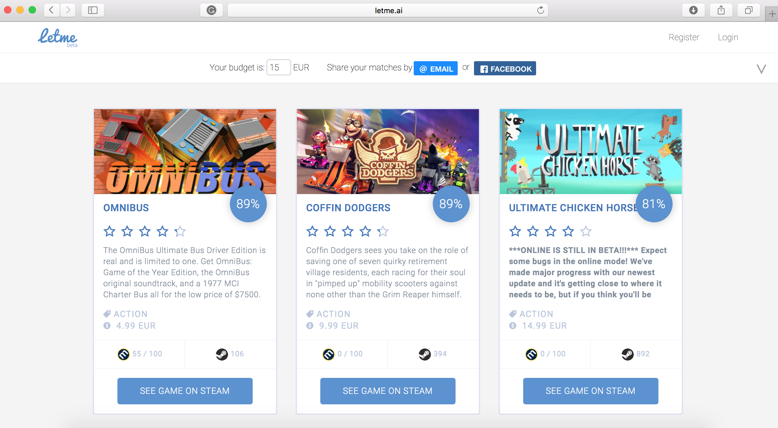 Apart from finding the game that are the best match for you, you can recruit your friends’ feedback via Facebook to get their input on your choice as well.