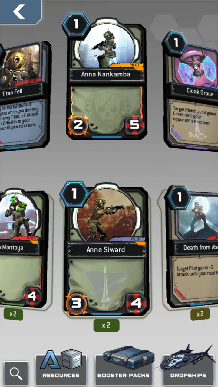 Players can customize and upgrade their decks to suit their play style. Play quick, damage-dealing hands with fast Pilots and Titans, or a strong, defensive technique with units, installations, and support personnel.