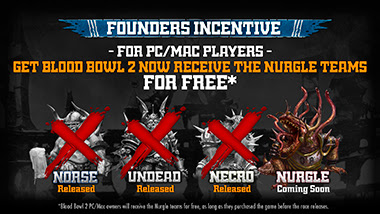 PC/Mac/Steam players of Blood Bowl 2 can also still benefit from The Founder’s Incentive. If you purchase the game before the release of the Nurgle team, you will receive this team for free once it’s available.