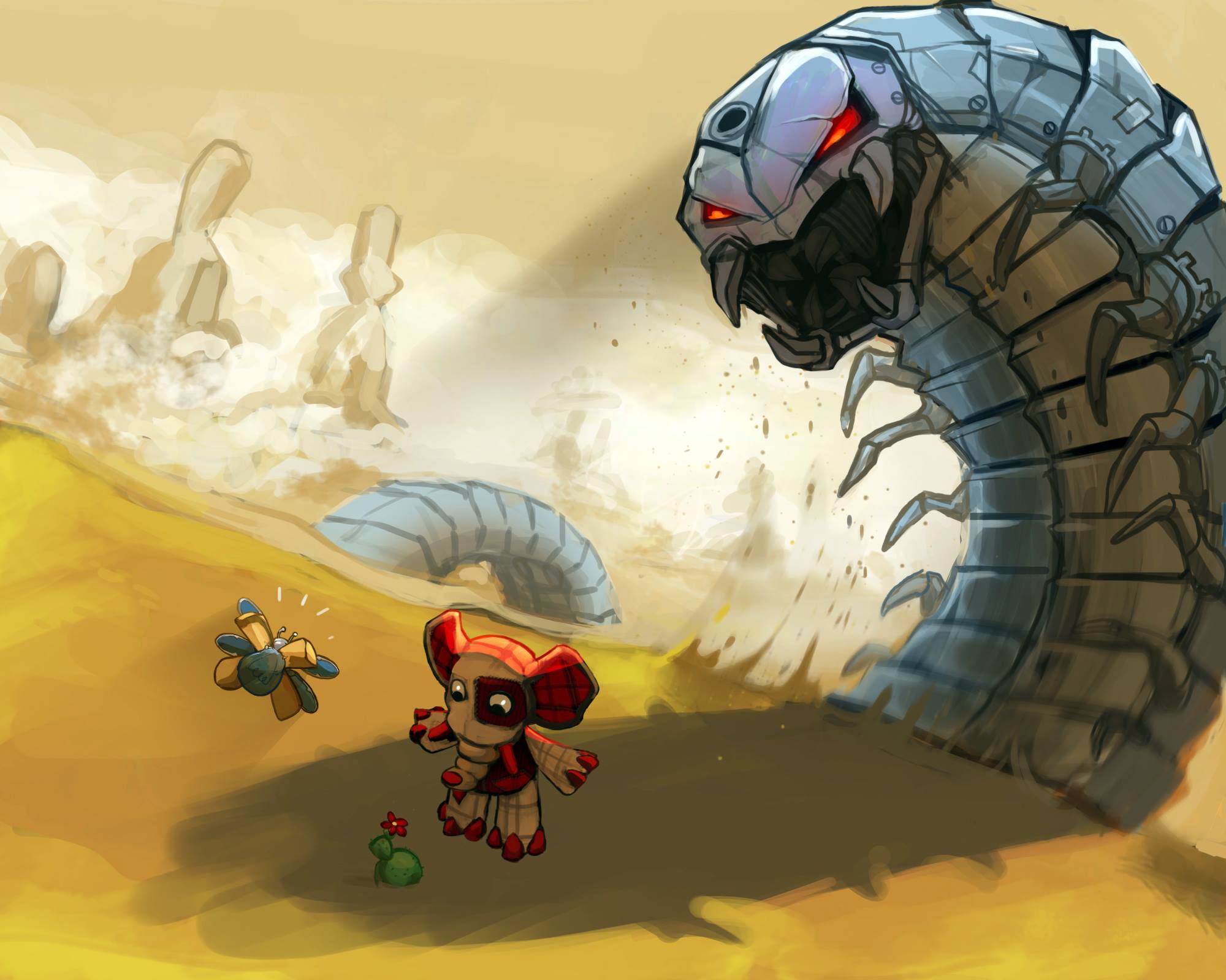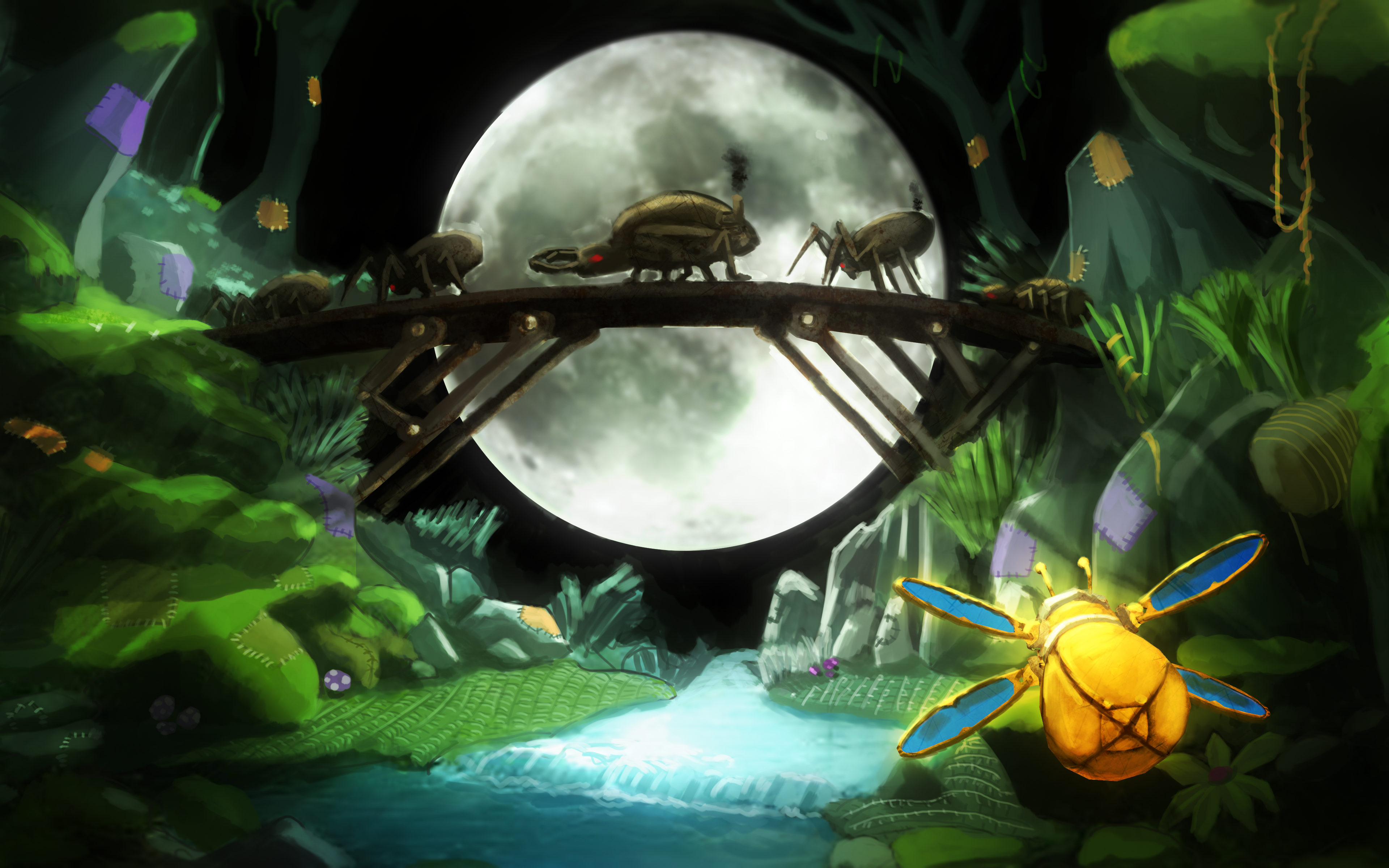 In Woven, you play Stuffy, a clumsy, but kind, elephant-shaped stuffed animal, and Glitch, a mysterious metal firefly. Stuffy will face many obstacles where his heavy elephant feet or clumsy arms will be more of a hindrance than a help.