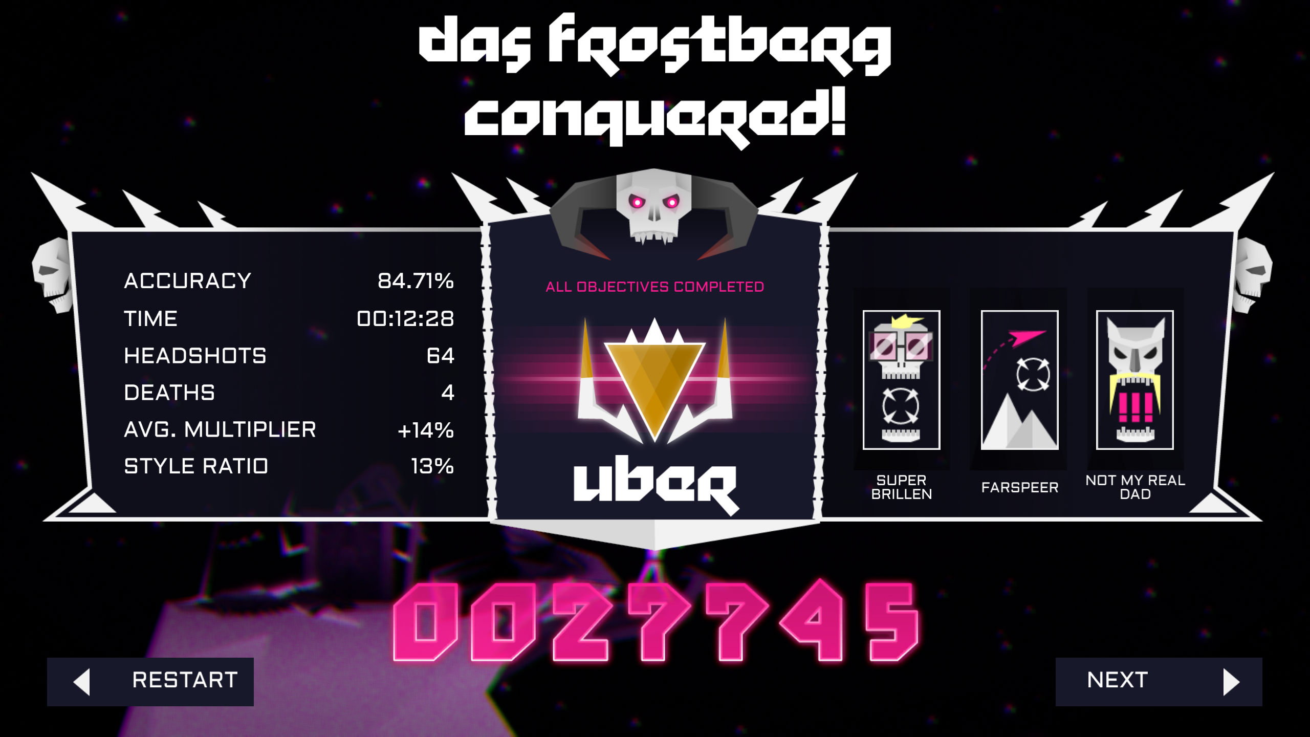 As you can see by the flashy video, Lichtspeer is set in a futuristic world that has roots in the ancient history of Germanic lore, but obviously with Nordic mythology, sci-fi/space-age fiction, and retro style 80s arcade feels on top of that. Your character must engage in combat for the entertainment of the Lichtgods, using your lightspear to fight through waves of enemies. The gameplay is focused entirely around using this weapon, taking careful aim at the hordes of enemies (including space Dwarfs, Giants, Walruses, Penguin Vikings, etc.) and chucking this projectile at them. You can rack up combos and pull off special attacks, shooting for the highest level score you can try to get. Upgrades and power-ups further your offense potential for these battle situations. If the boss fights feel like a breeze to you, step up the challenge by playing “Rage Quit” and “New Game+” modes afterward.