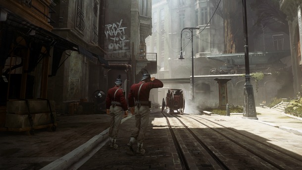 The city of Karnaca was intended to be unique, but still adhere to the same industrial flavor of the first Dishonored game. The city is closer to the equator, has more vegetation, and a more blended culture of people from all over, each with their own songs, dances, and foods to create an amazing blend of diversity.