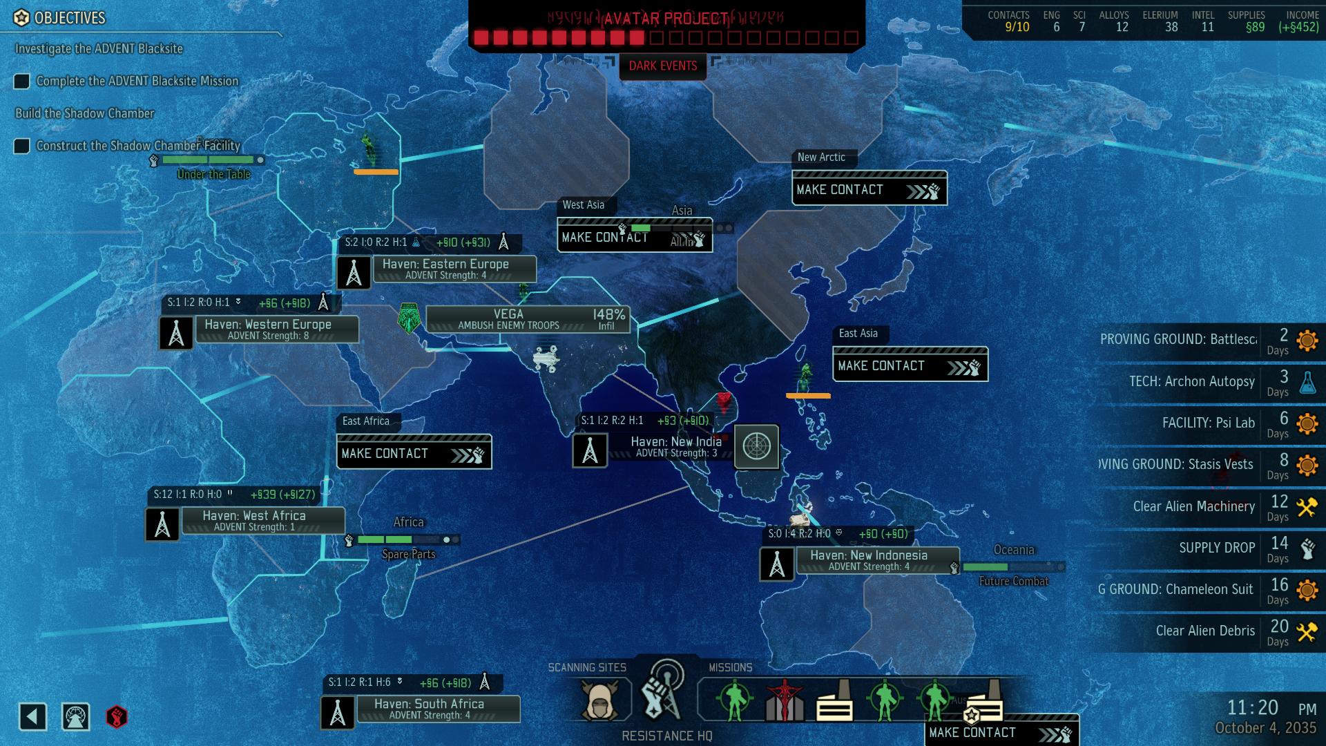 ADVENT has employed a new strategic AI that operates counter to your own efforts, under the same goal of finishing the Avatar Project. It will try to move forces from adjacent regions to your location, and if it feels safe there it will try to construct research facilities to further the Avatar Project.
