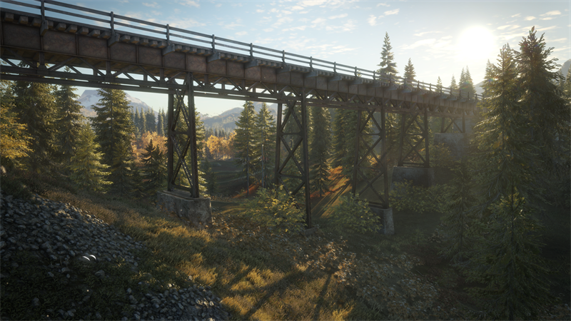 Layton Lake Distrinct is set in the Pacific Northwest and features dense pine forests surrounded by snow-covered peaks, inhabited with game like the Moose, the Whitetail Deer, the Roosevelt Elk, the Black Bear, and more. This stands in contrast to the mellow autumn hues of the previously announced Hirschfelden hunting reserve .