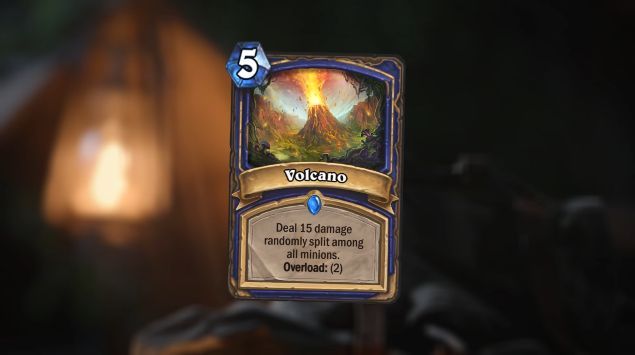The expansion brings 135 new cards to the game. A small selection of these cards have been revealed, including the five-mana Shaman card Volcano, which randomly deals 15 damage split between all minions. Play Volcano to do maximum damage across the board.