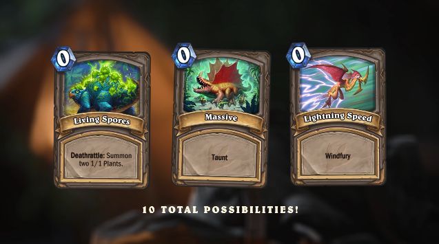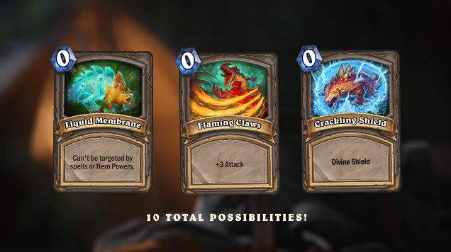 Blizzard noted that some “familiar faces” will be added to the new Elemental type, while a new Adapt keyword is being introduced. This “allows a minion to become infused with elemental power, granting it new properties.” When you play an Adapt card, you are able to choose from three different buffs from the minion, with ten total buffs in all.