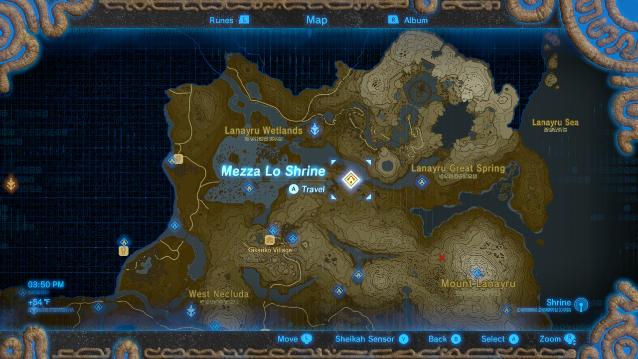 Found on a hill with a Ruto musician. You’ll need to complete a Shrine Quest, given by the Ruto, to access this shrine. Find it on Rabia Plain.