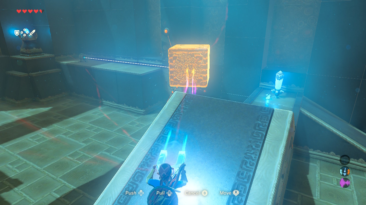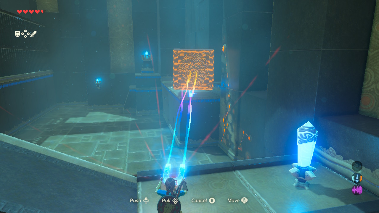 - Use Magnesis to grab the metal block. Moving it will allow the laser to hit the switch.
