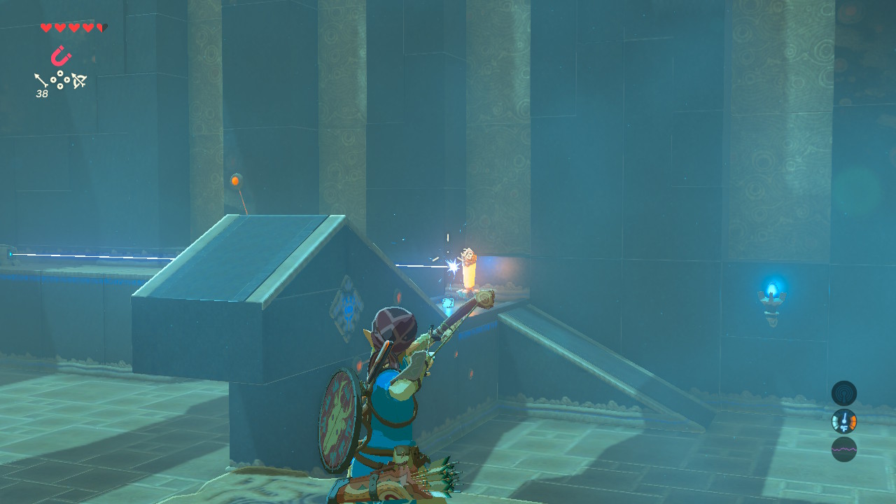 - Shoot the switch with a bow to move to the 9 o’clock position.