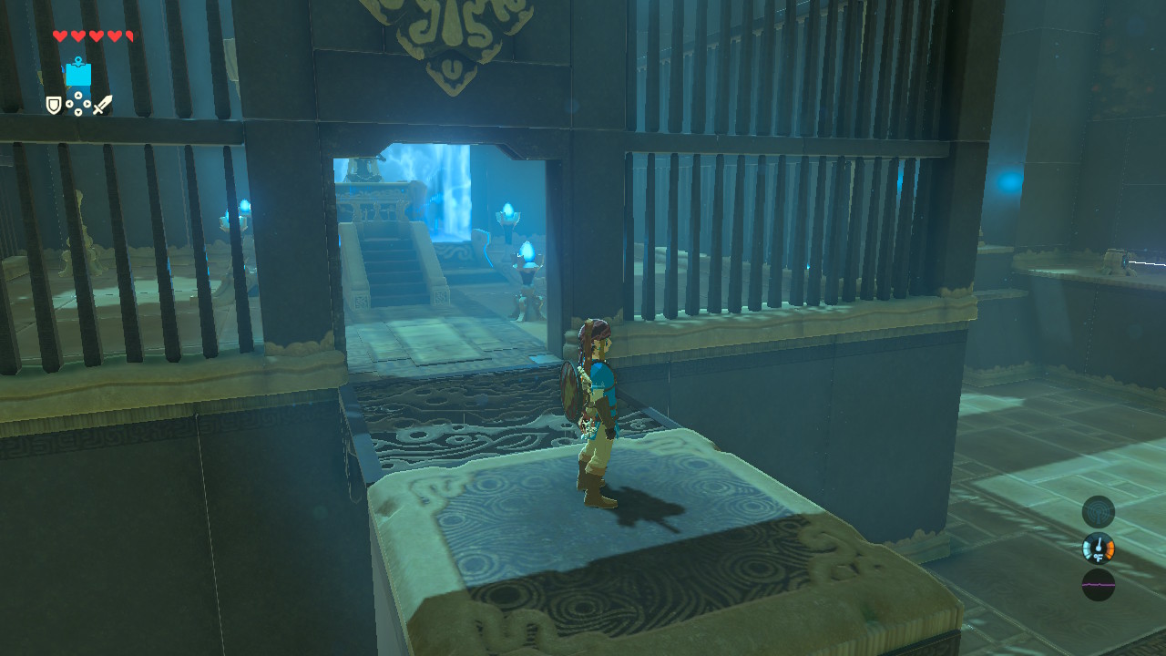 This trial consists of one switch, and a revolving platform. Hit the switch to turn the platform clockwise — the goal is to open the door to the shrine, then reach the shrine.