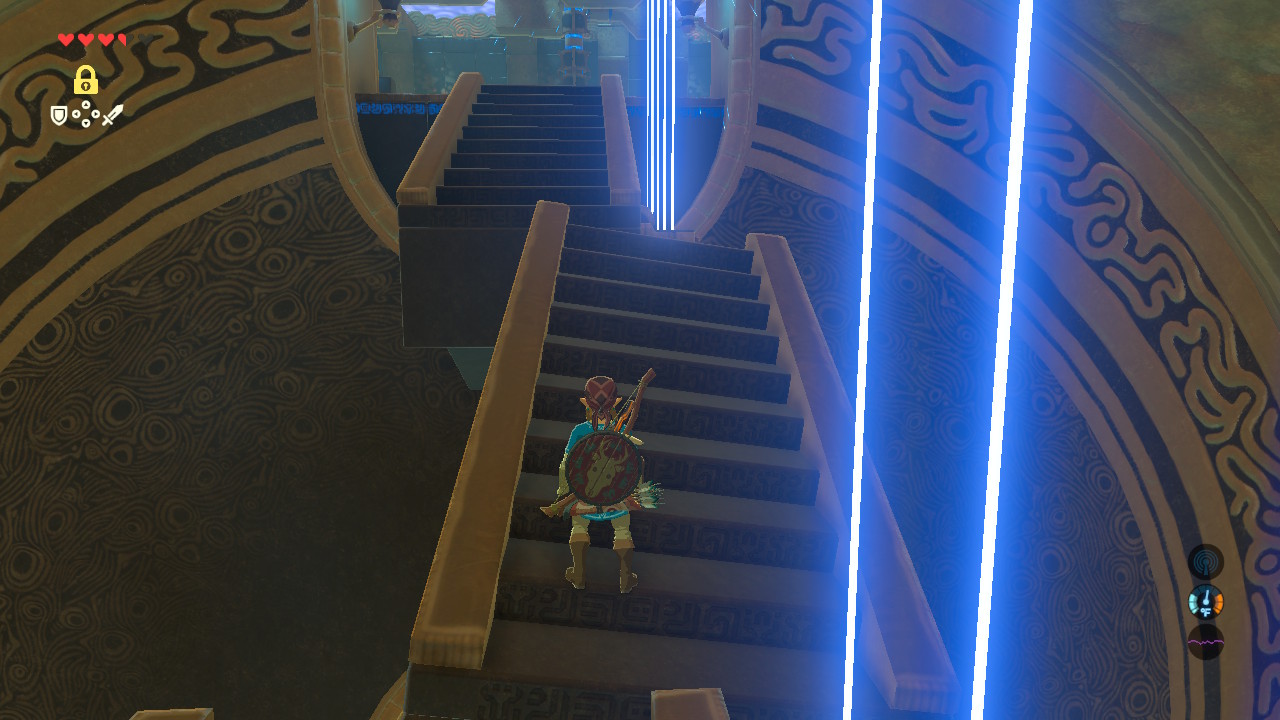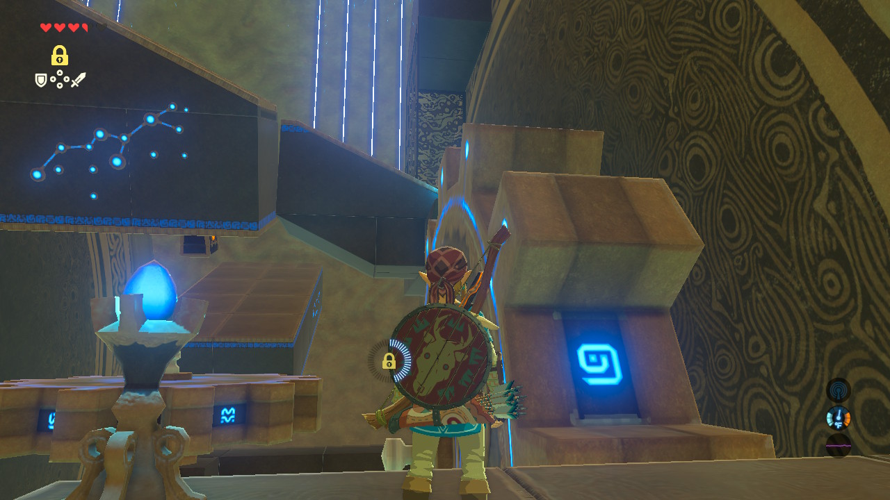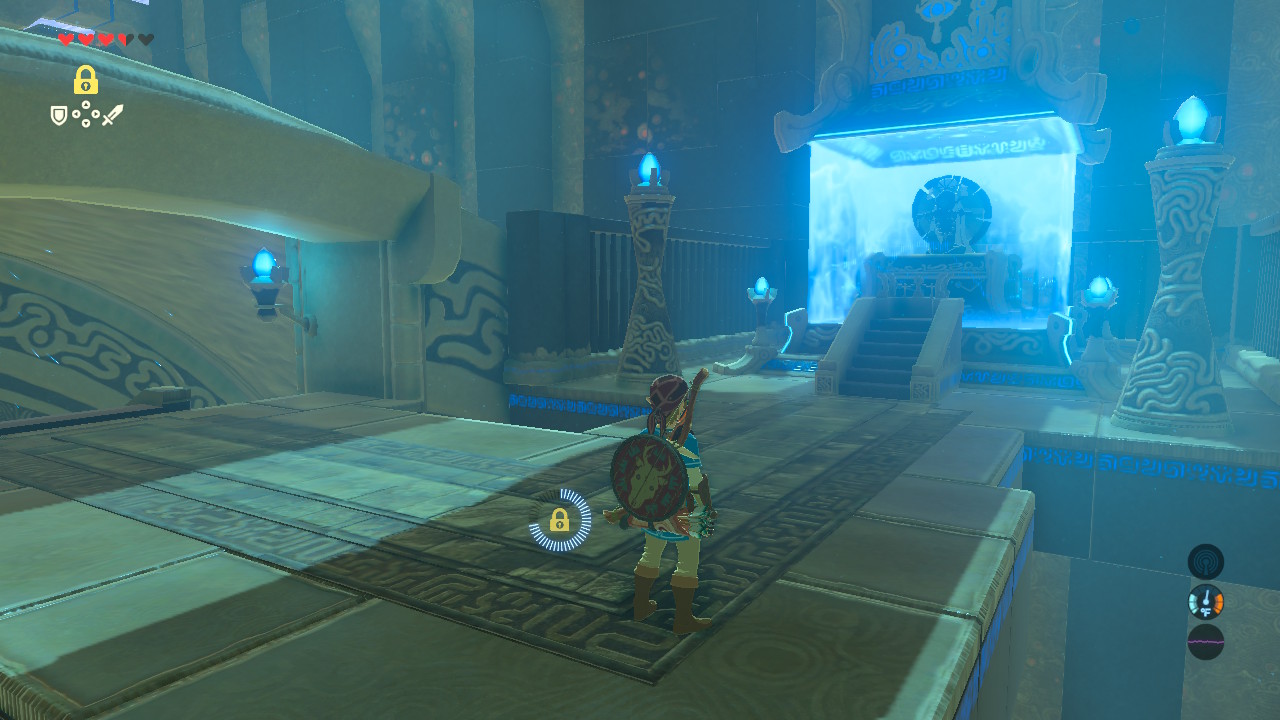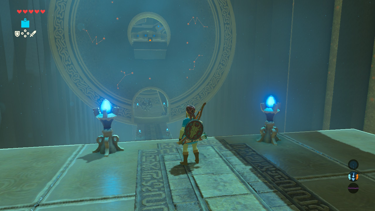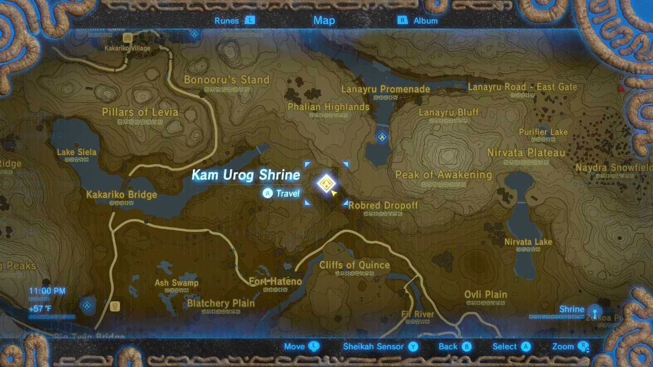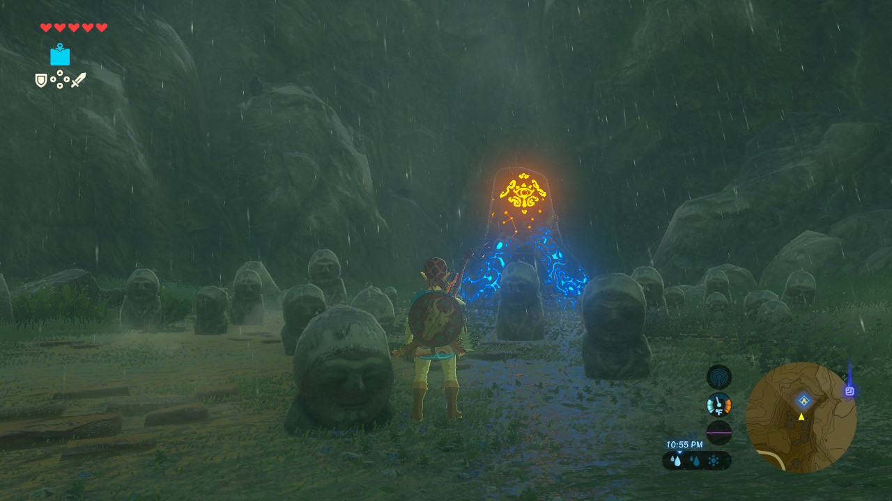 North of the Cliffs of Quince, near the Robred Dropoff, there’s a small box canyon that’s filled with small statues. Wait until after 9PM at night, and one of these statues’ eyes will glow purple. Shoot that statue with an arrow to reveal the hidden shrine.