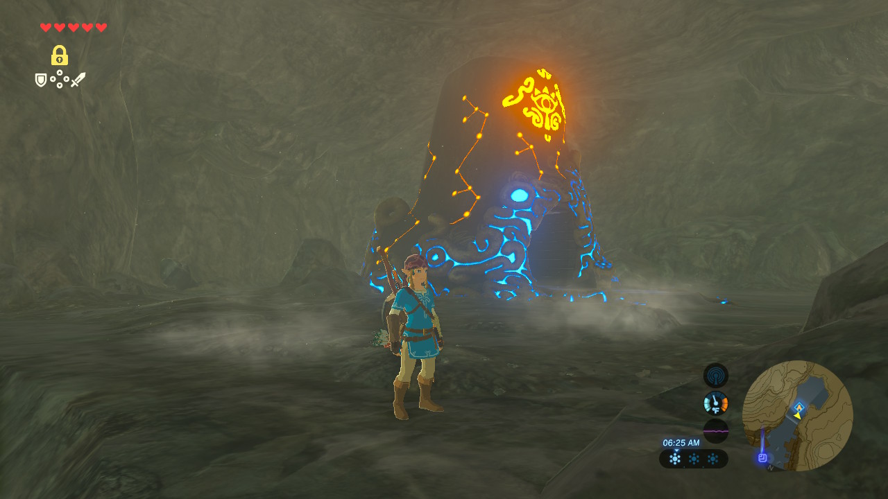 Paraglide into the Lanayru Promenade and enter the hidden cave behind the waterfall to find this shrine. The area can be pretty dangerous, so watch yourself! Try climbing into the cave from above instead of below.