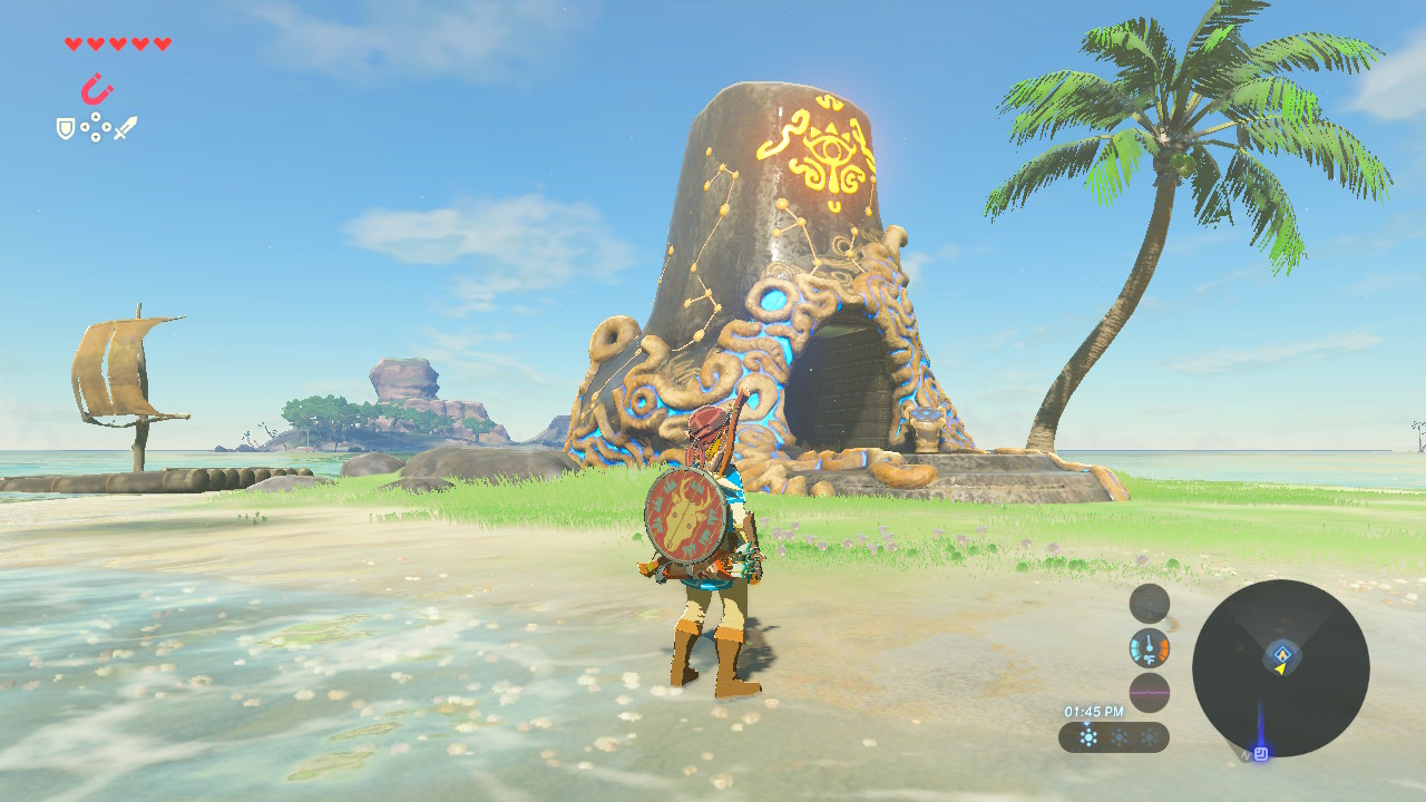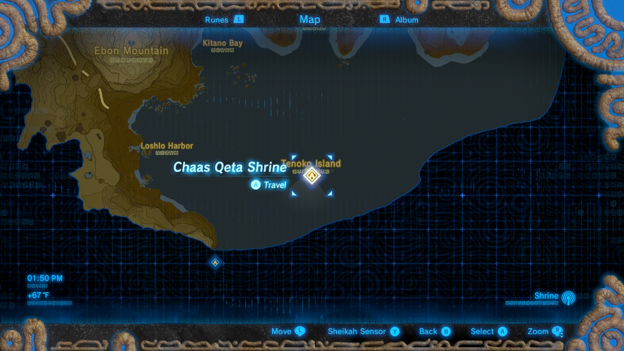 This shrine is far out in the Necluda Sea, on a tiny island that’s easily visible for Hateno Village. Find a tiny wind boat around Hateno Bay (or Deepback Bay) and use a leaf to generate wind, allowing you to steer the boat toward Tenoko Island.
