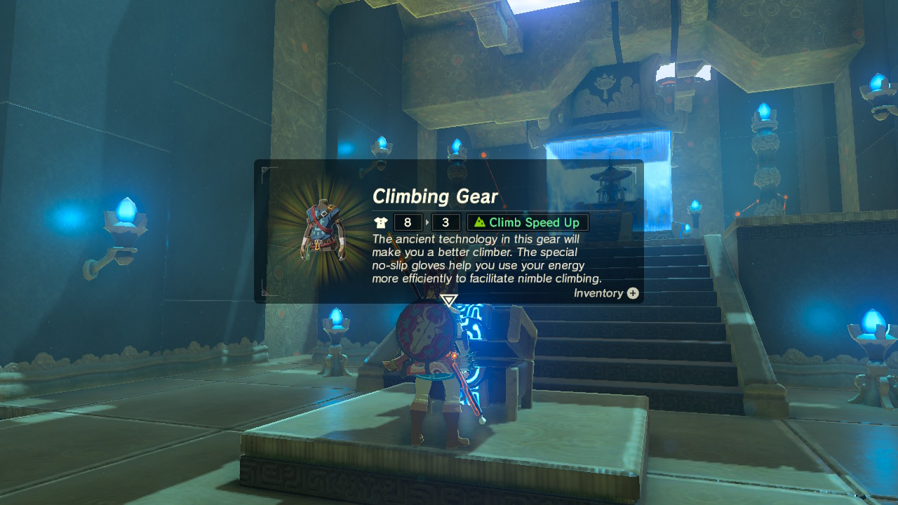 - Optional Chest: The chest before the altar contains the Climbing Gear shirt, which gives Link an additional climbing speed boost.