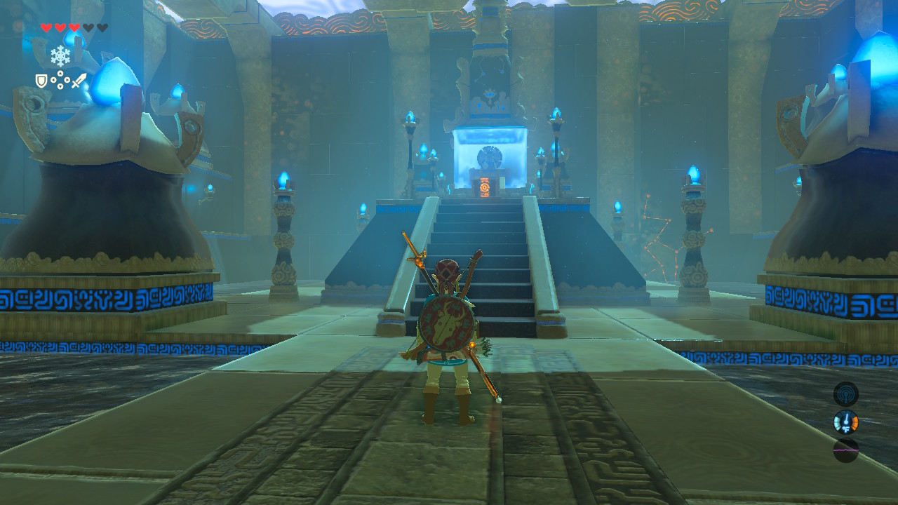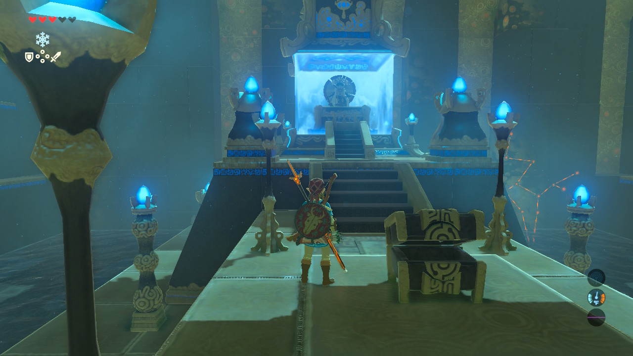 There’s no puzzle here either. Finding the shrine is your challenge. Inside, there’s a chest and an altar. Very simple.