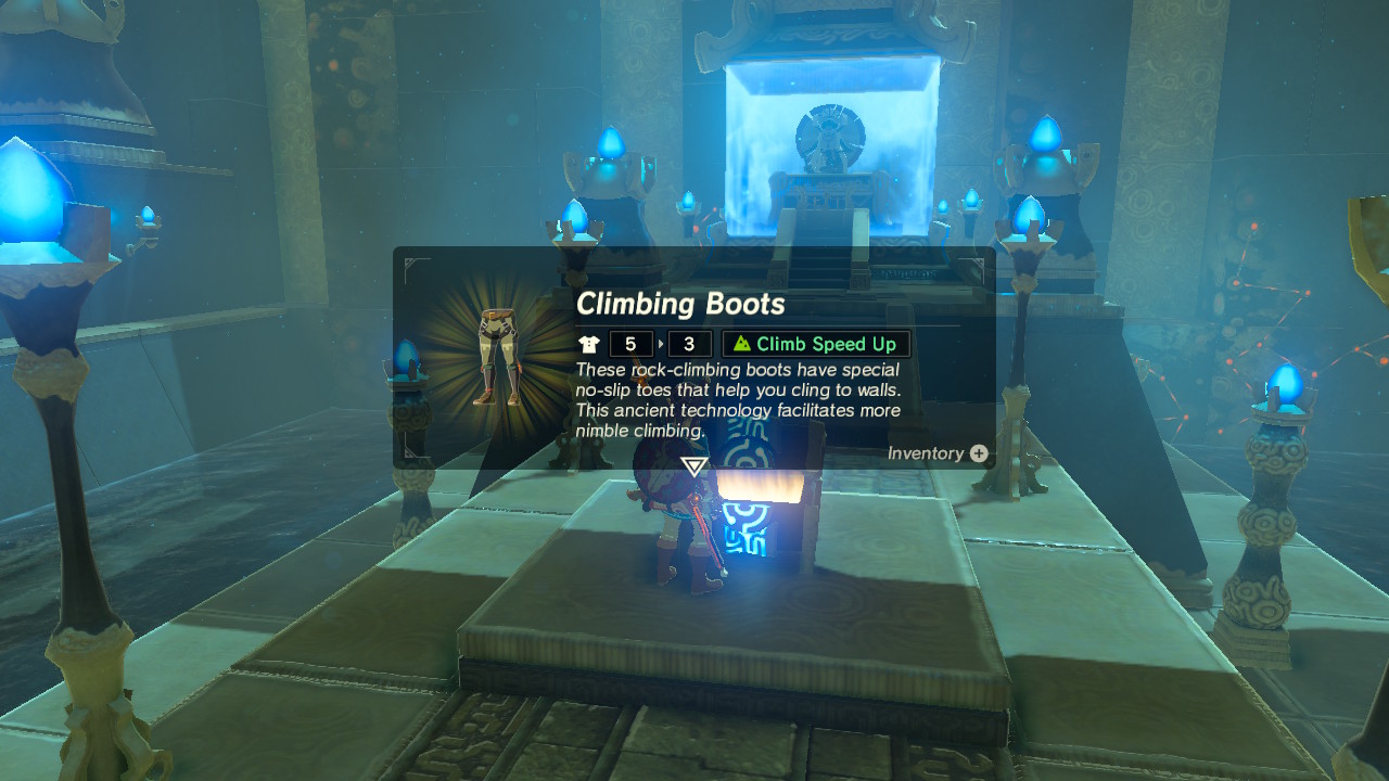 - Optional Chest: The final piece of the Climbing Set is found here. The Climbing Boots add an additional climb speed boost to Link.